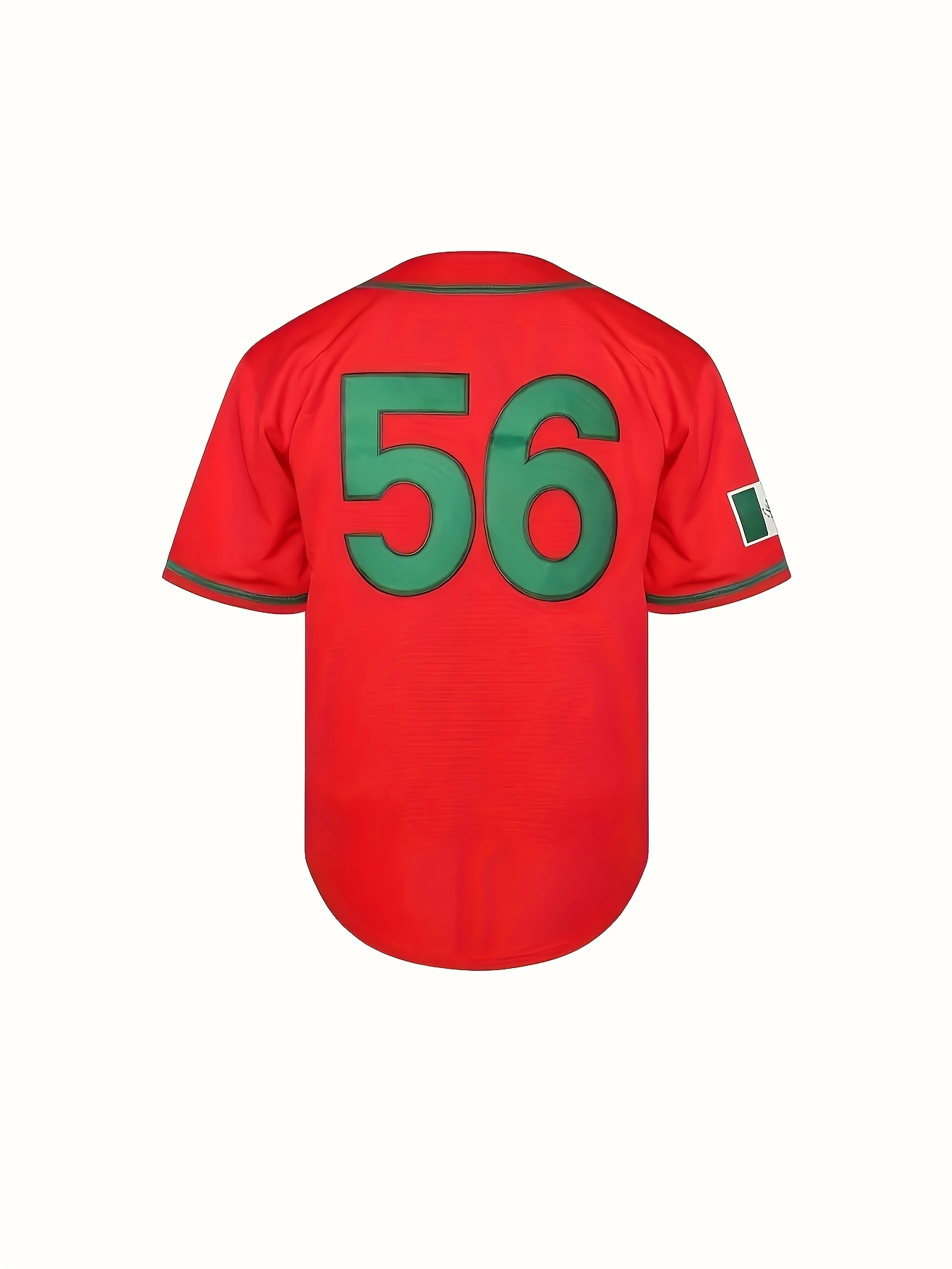 1pc Men'S Mexico #56 Baseball Jersey - V-Neck, Short Sleeve, Embroidered, Breathable Polyester, Lightweight, Moisture-Wicking, Ergonomic Design, Button Closure - Sports & Casual Wear for Four Seasons