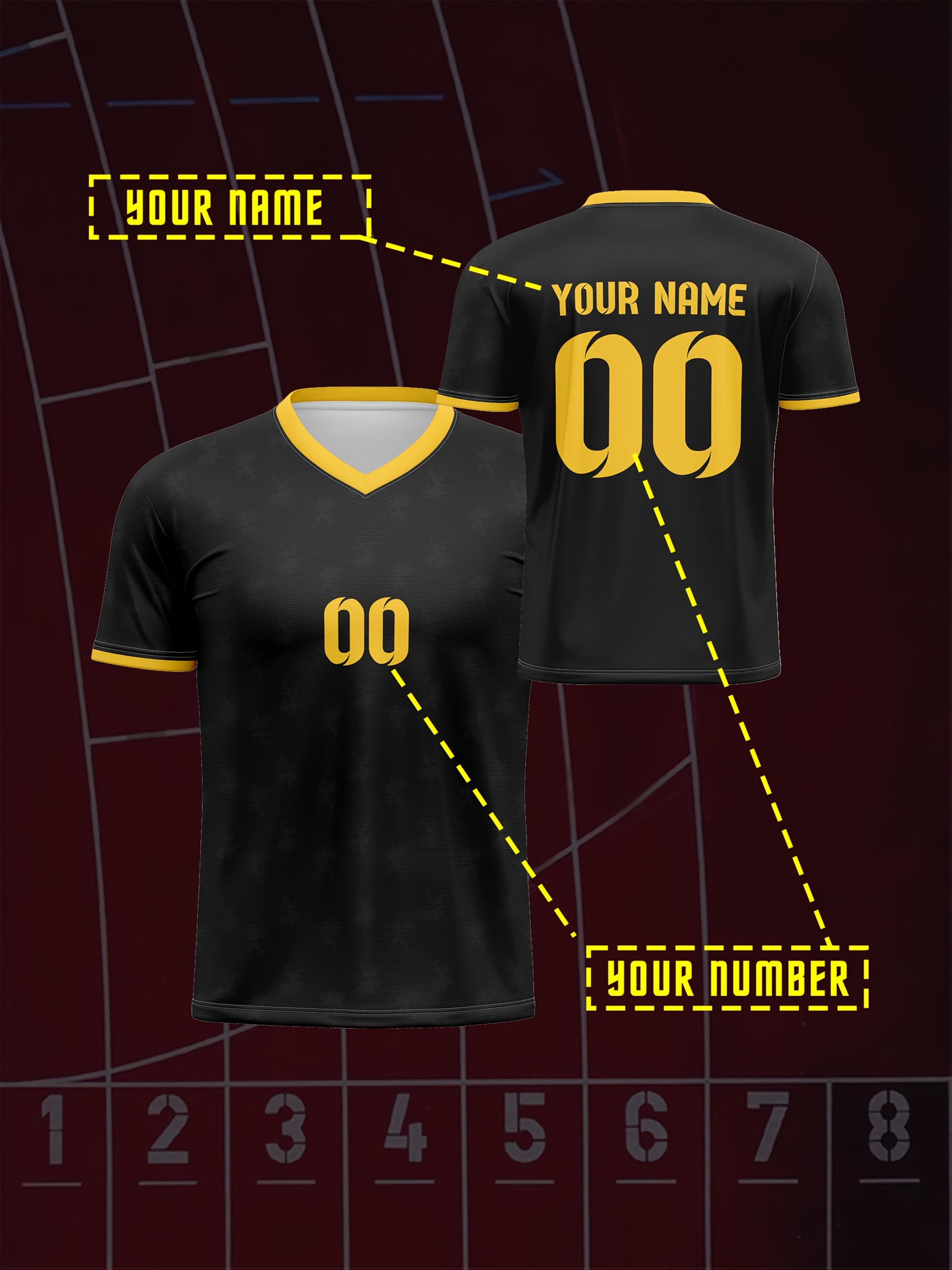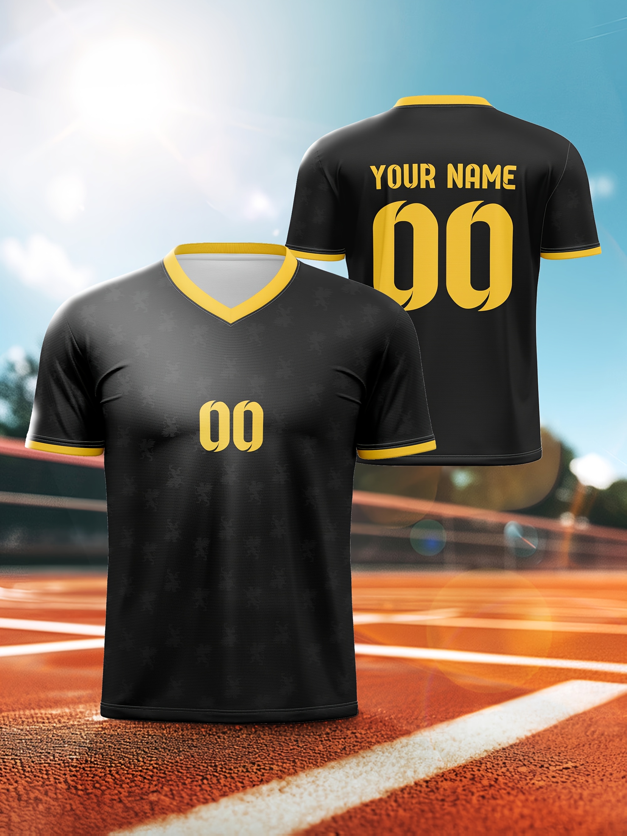 1pc Customizable Kids Soccer Jersey - Polyester V-Neck Football Top with Personalized Name & Number, Medium Stretch, All Over Print, Casual Sports Style for Boys & Girls, Perfect for Training, Beach, Weekend, Birthday - Knit Fabric, Regular Fit