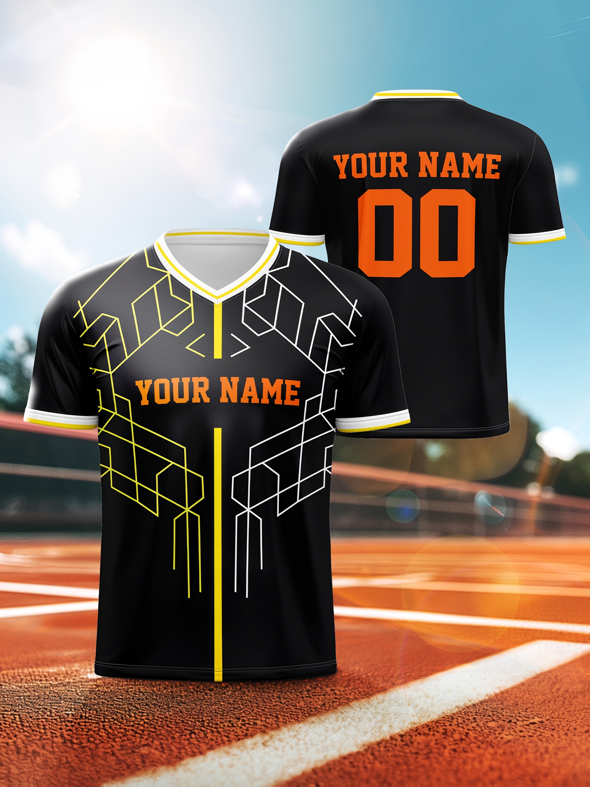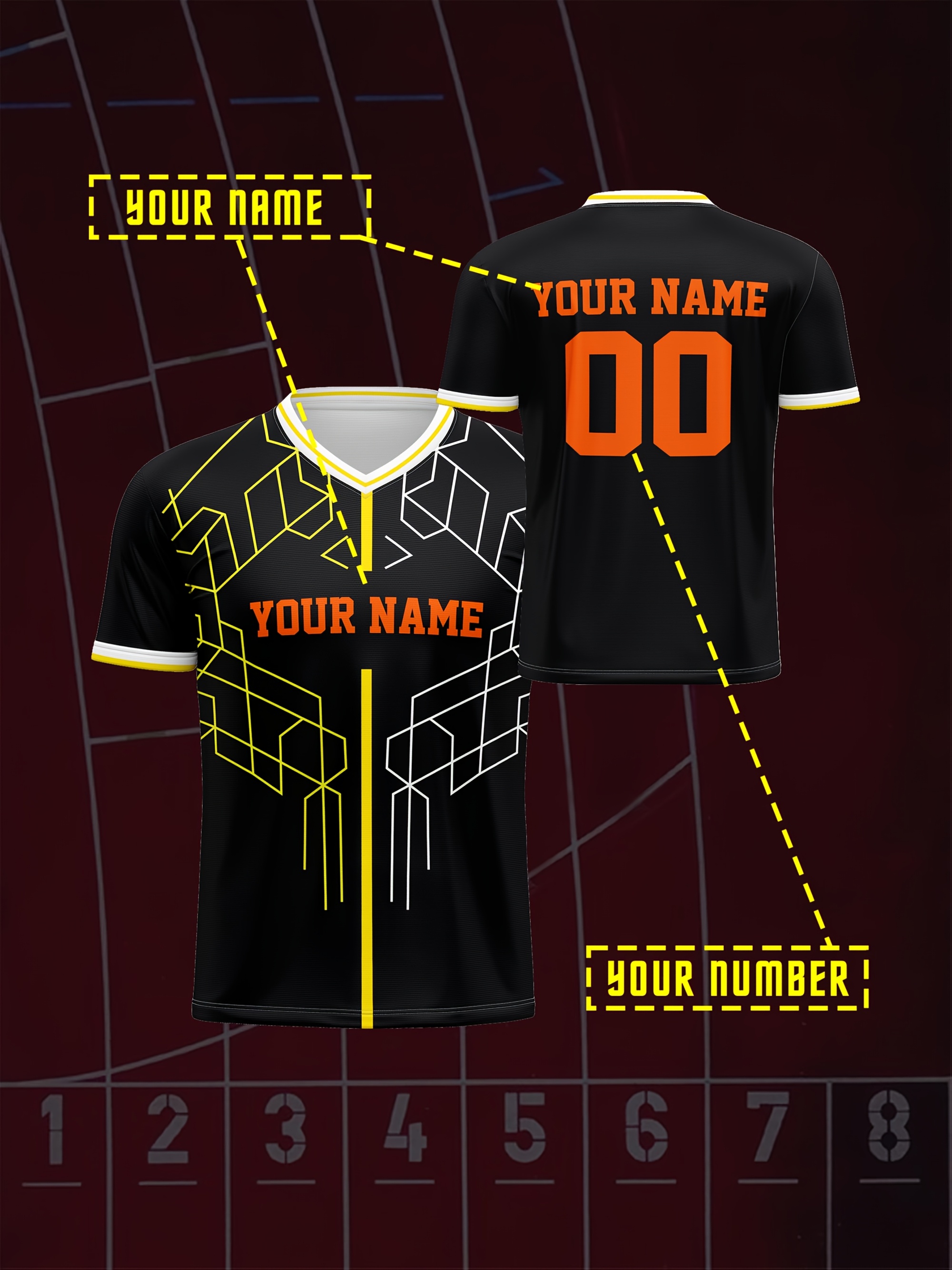 1pc Customizable V-Neck Soccer Jersey for Kids - 100% Polyester Knit Fabric, All-Over Print, Personalized Name & Number, Regular Fit for Boys & Girls - Ideal for Sports, Casual Wear, Training, Beach, Birthday & Outdoors