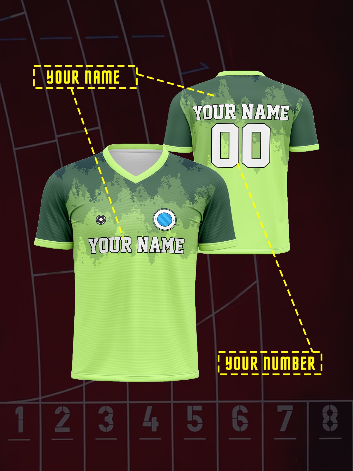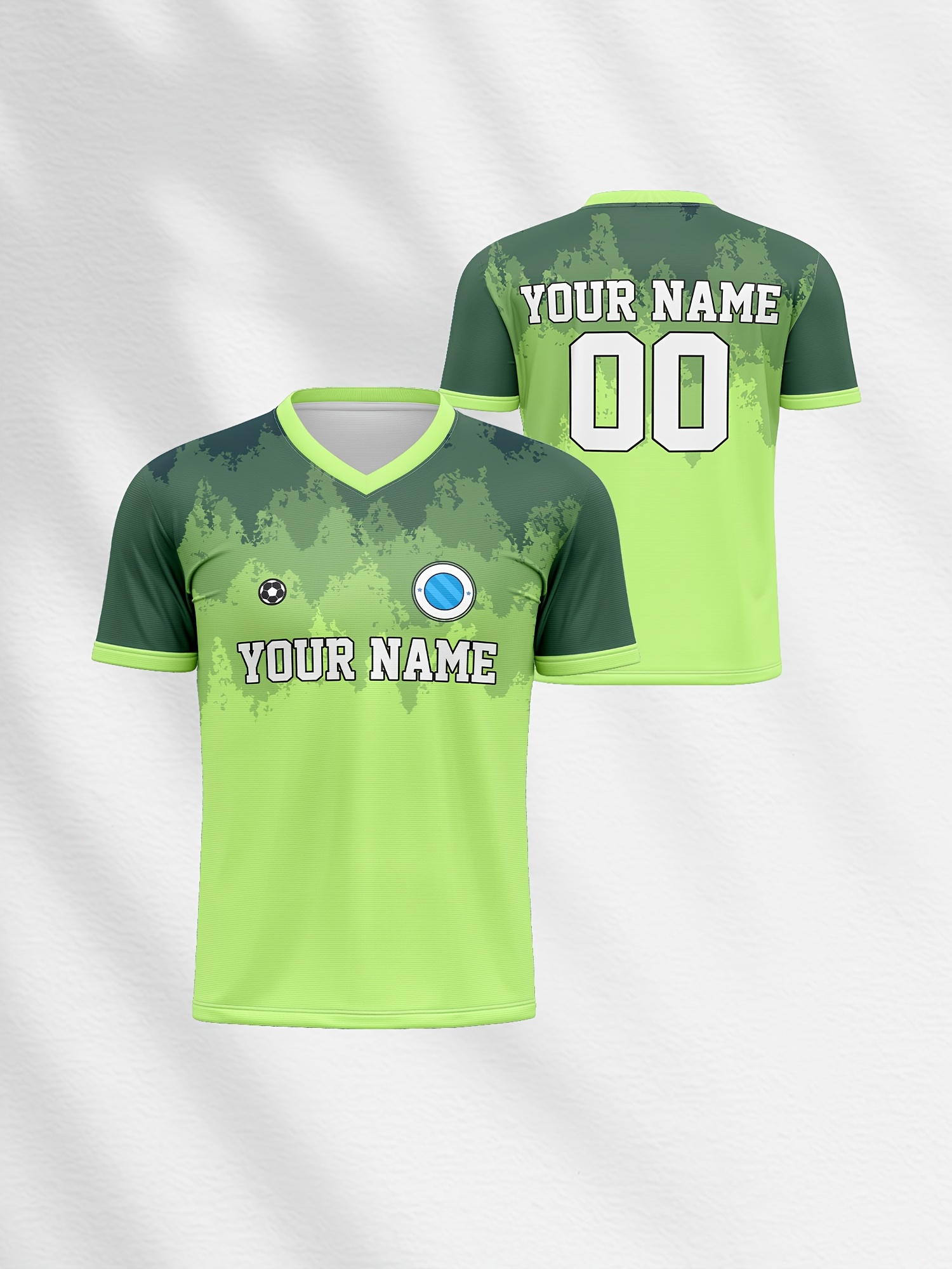 Customizable Youngsters' Soccer Jersey - V-Neck, Personalized Name & Number, Bright Green with Blue Accents, Comfortable for Sports, Outdoor Play & Training, Youth Sports Apparel | Vibrant Youth Top | Comfortable Polyester