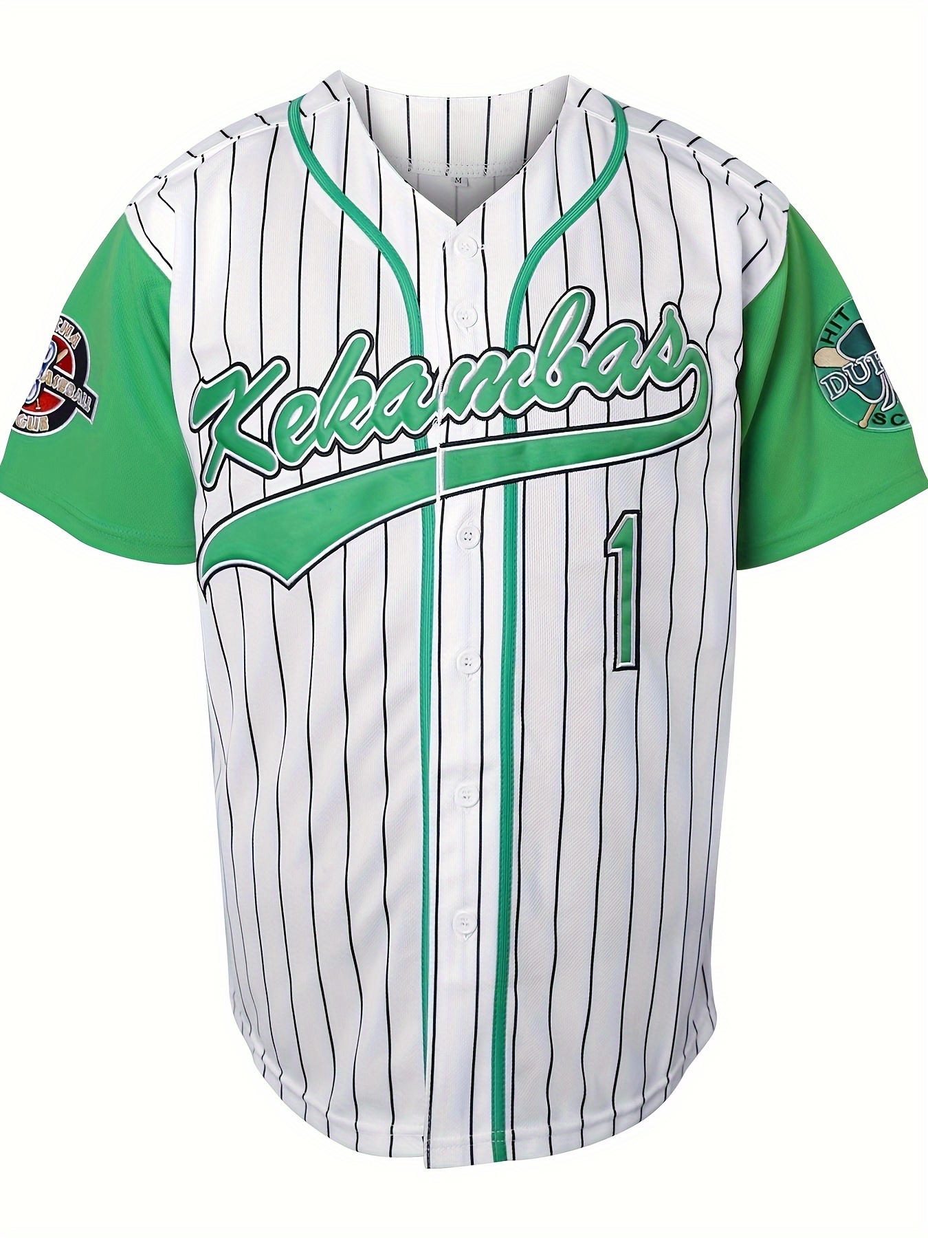Men's #1 White Striped Embroidered Baseball Jersey - V-Neck, Short Sleeve, Breathable & Moisture-Wicking, Perfect for Sports & Casual Wear