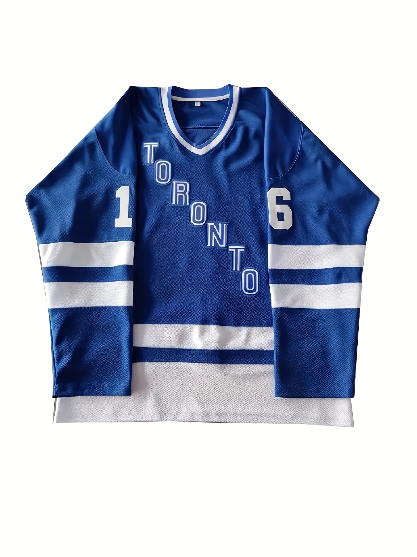 Men'S #16 Vintage Blue Ice Hockey Jersey With Embroidery Stitched Letters And Numbers S-XXXL