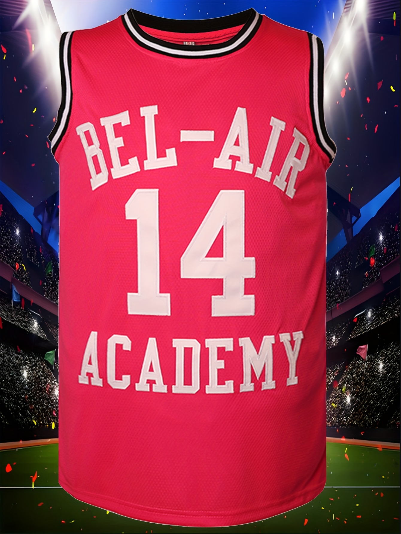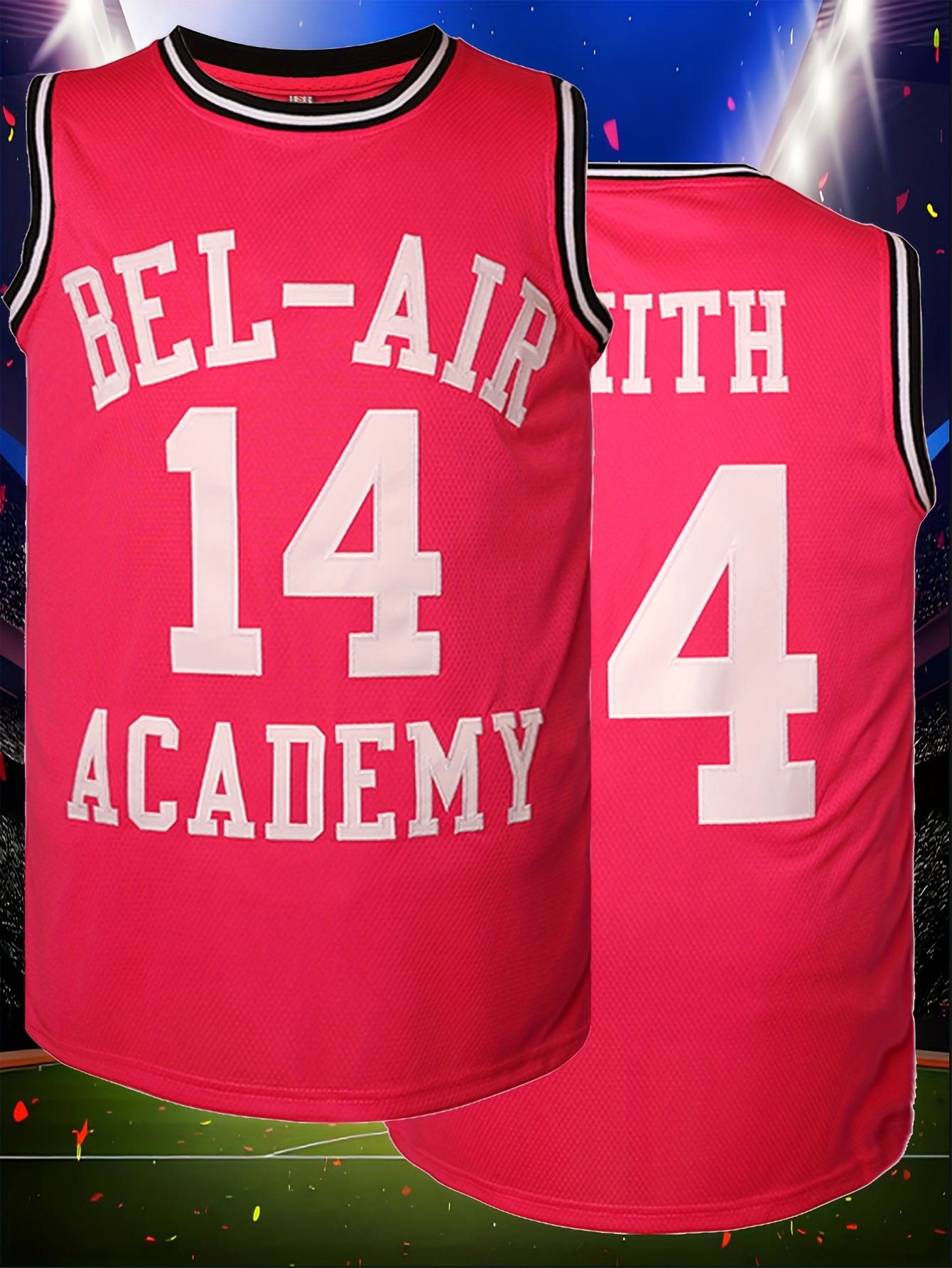 Bel-Air #14 Men's Pink Basketball Jersey - Vibrant Sports Uniform, S-XXXL, Lightweight Polyester, Machine Washable for Team, Casual & Outdoor Activities