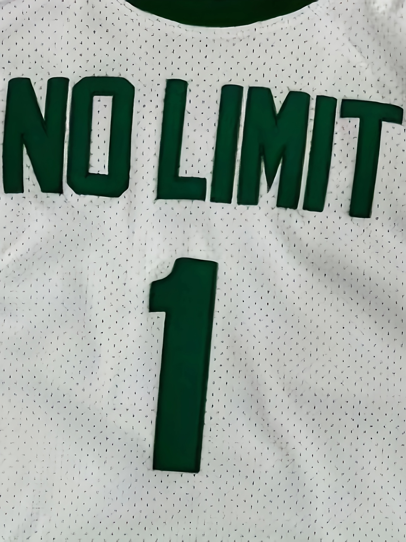 Men's #1 Basketball Jersey - White with Green "NO LIMIT" Embroidery, Loose Fit, Round Neck, Breathable Polyester Knit for Sports & Casual Wear, Sizes S-XXXL