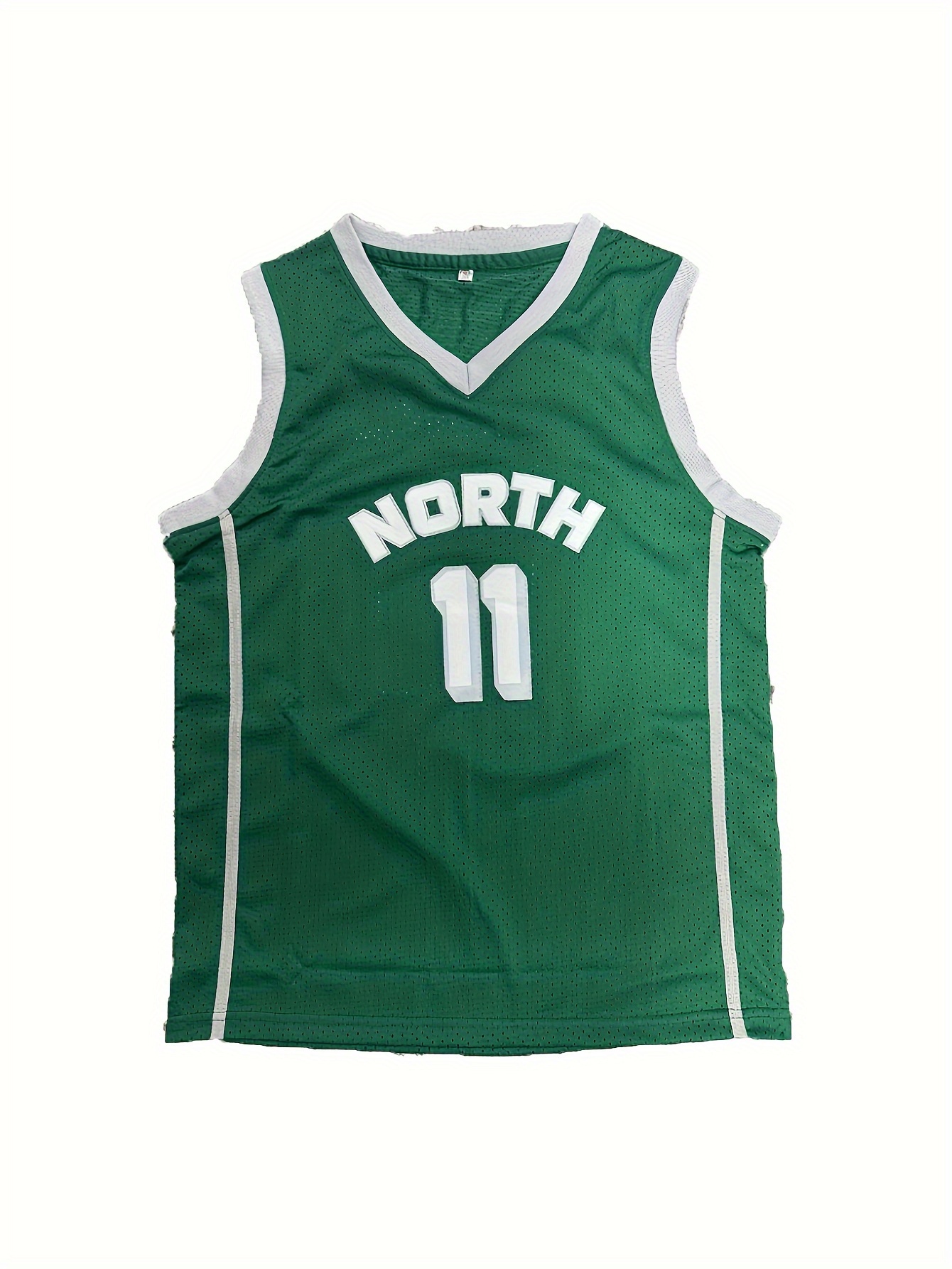 Men's #11 North Basketball Jersey - Breathable & Comfortable Mesh Tank Top, V-Neck, Sleeveless Sports Uniform for Training & Casual Wear, Green, Sizes S-3XL