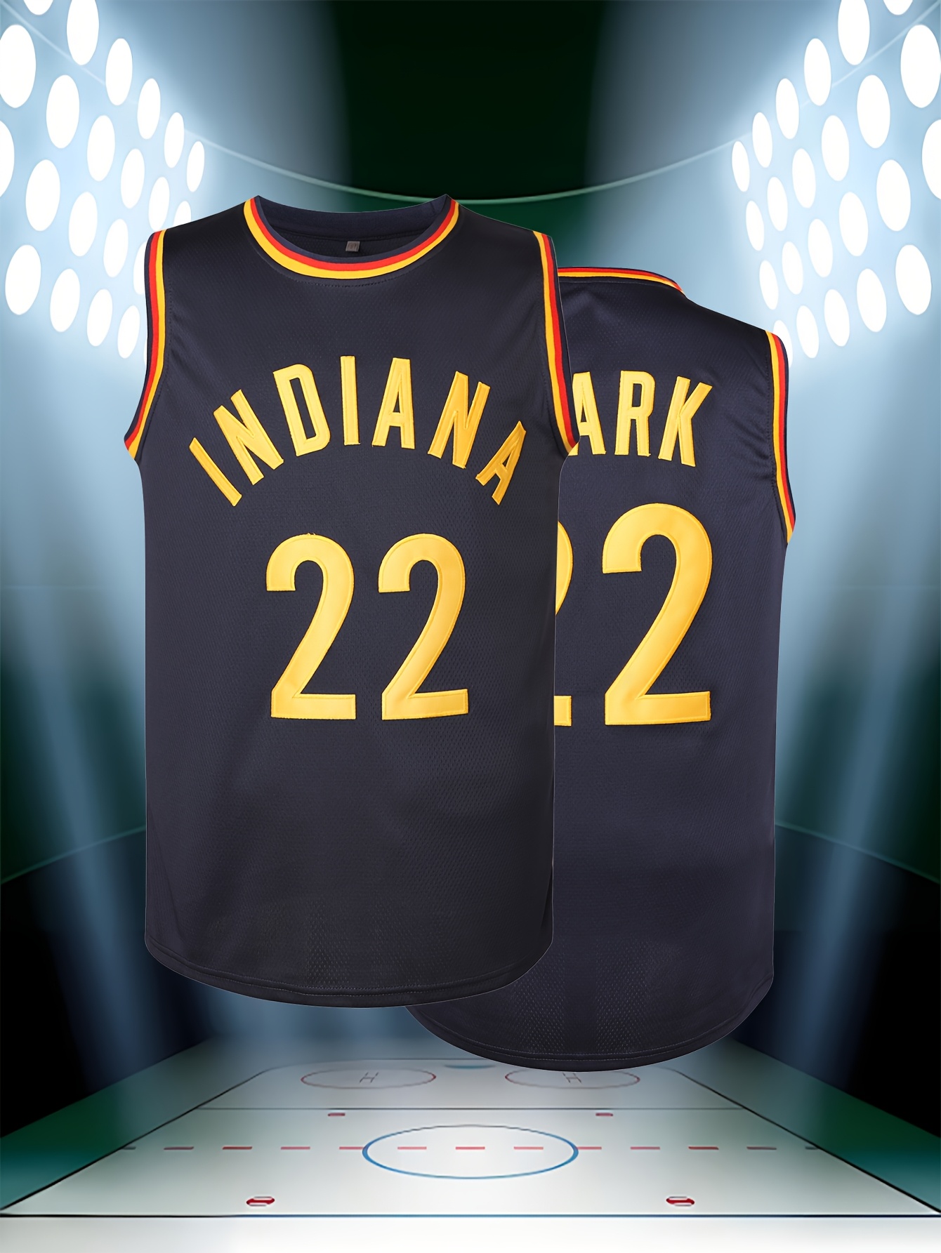 Men's #22 Indiana Park Basketball Jersey - Breathable, Comfortable Sleeveless Sports Training Uniform with V-Neck Design, Black, Sizes S-3XL, Team Sports Uniform | Relaxed Fit Jersey | Glossy Fabric