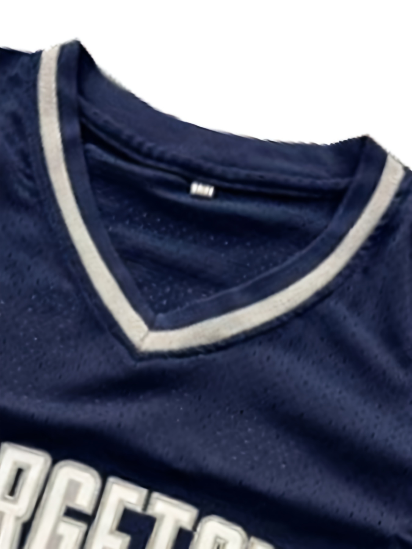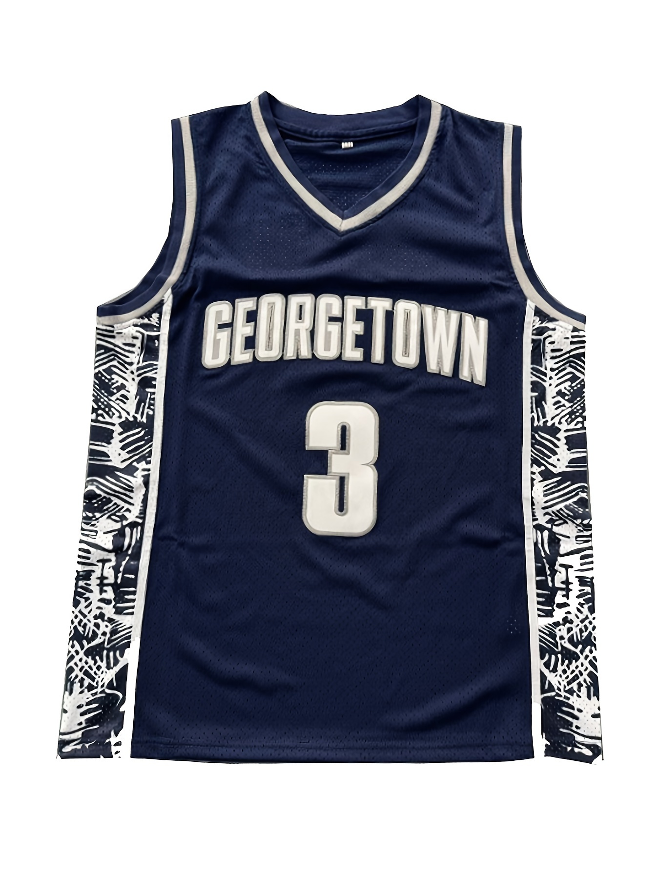 Men's #3 Dark Blue Basketball Jersey - Breathable Polyester, V-Neck, Lettering & Numbers, Perfect for Sports & Casual Wear