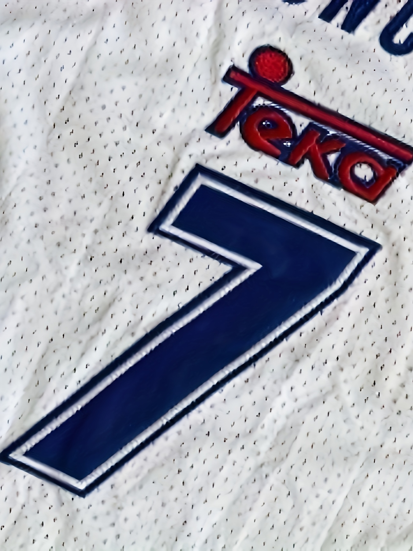 Men's #7 Basketball Training Jersey - Breathable Mesh Tank Top with V-Neck, Sleeveless Athletic Shirt for Sports & Casual Wear, Sizes S-3XL, White with Blue & Red Accents