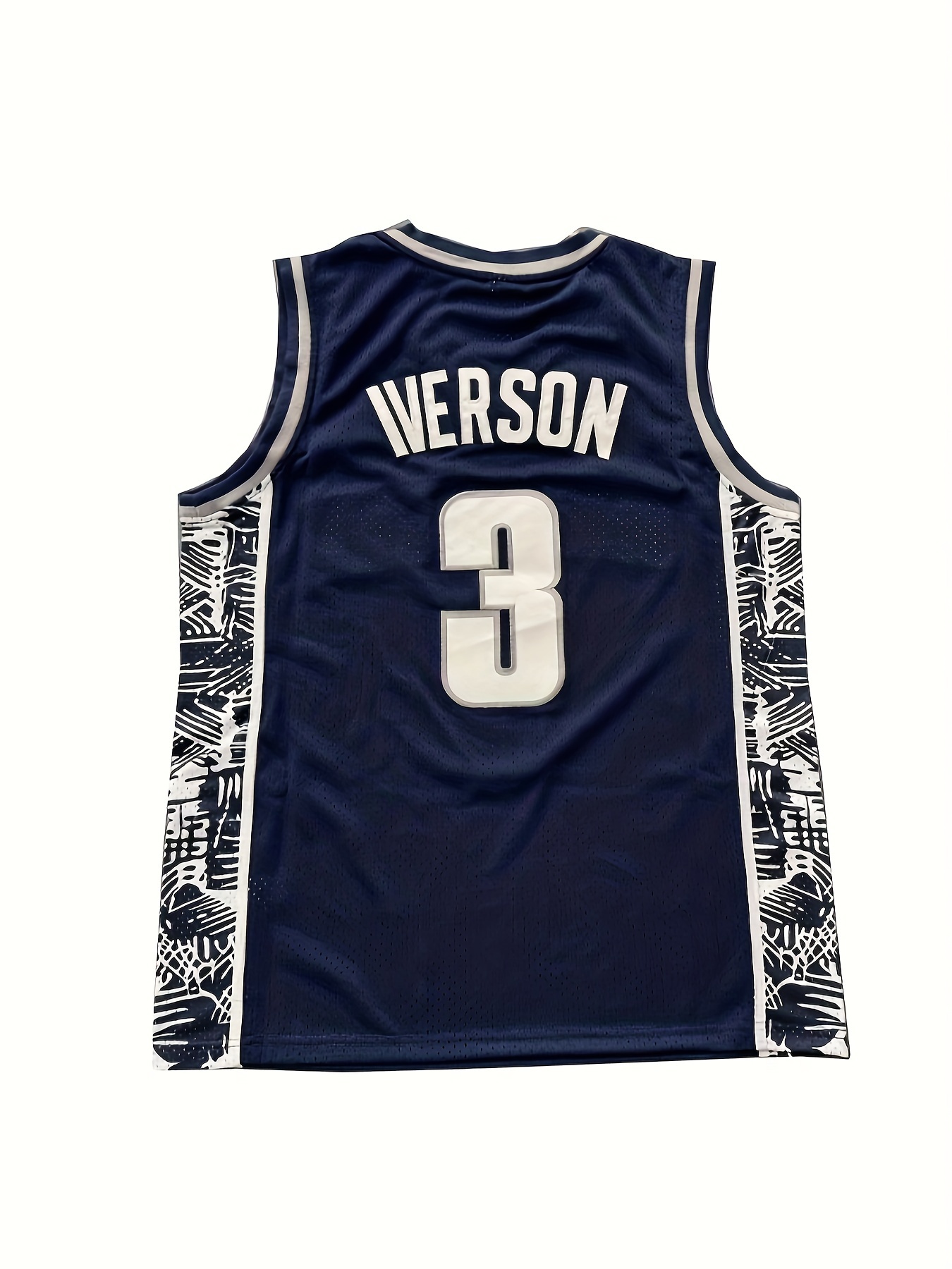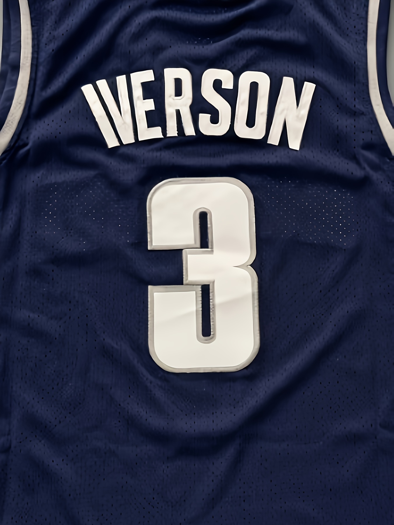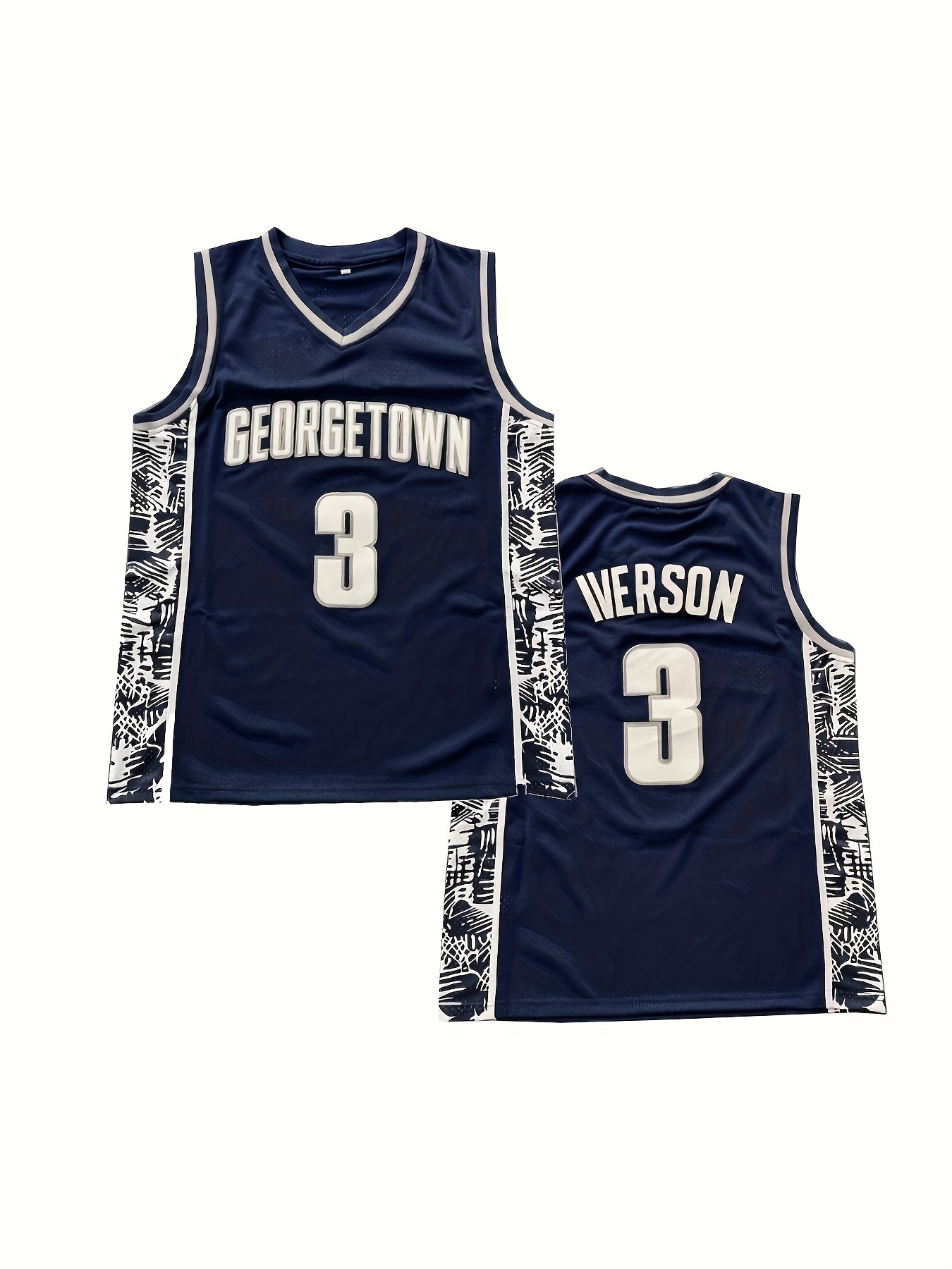 Men's Georgetown #3 Basketball Jersey - Navy Blue with White & Red Accents, V-Neck, Sleeveless, Polyester, Machine Washable - Ideal for Team Sports, Outdoor Activities & All Seasons, Basketball Gifts