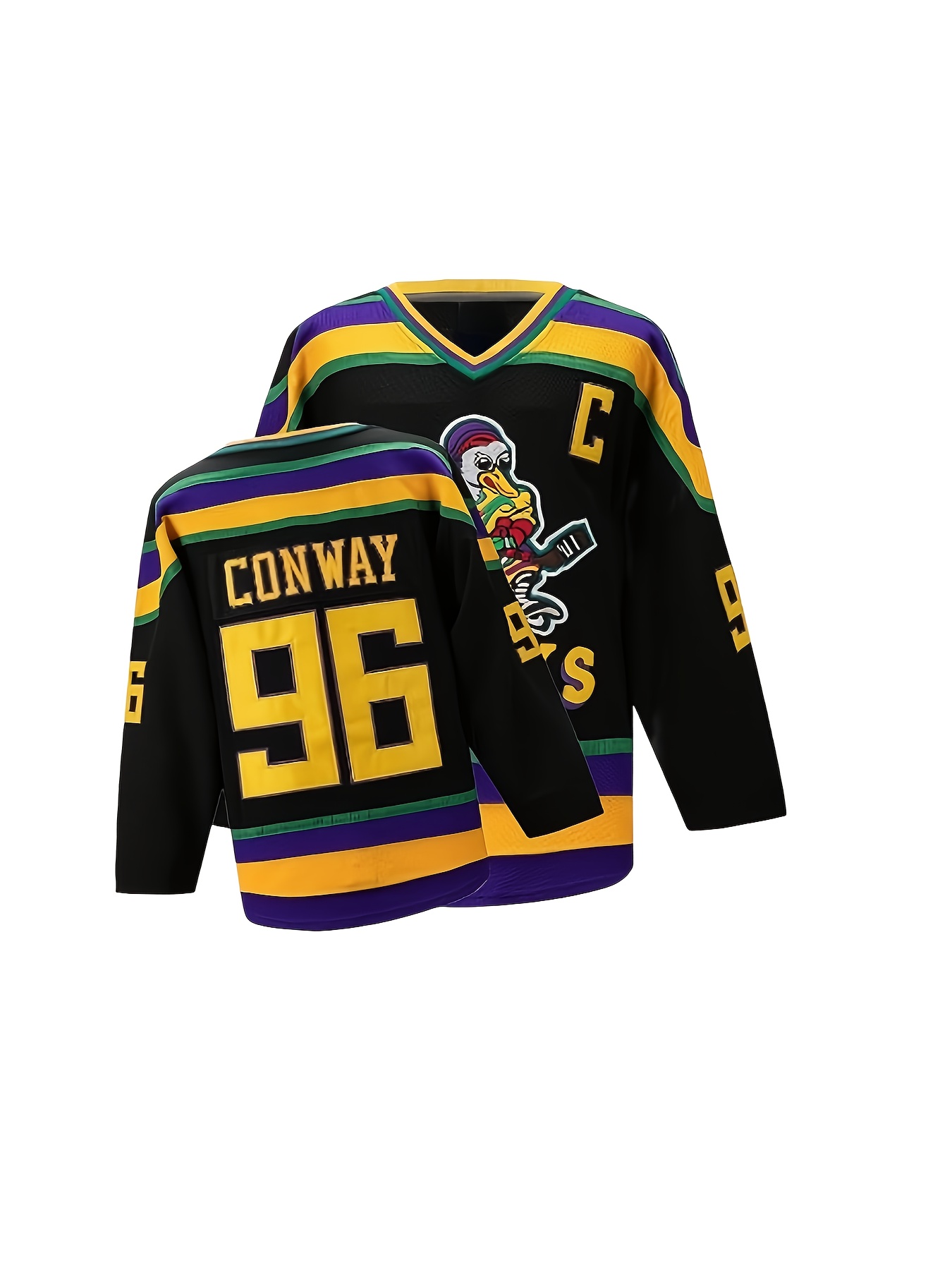 Men's Ice Hockey Jersey Black #96 Charlie Conway Mighty Ducks Adam Banks Movie Retro Vintage