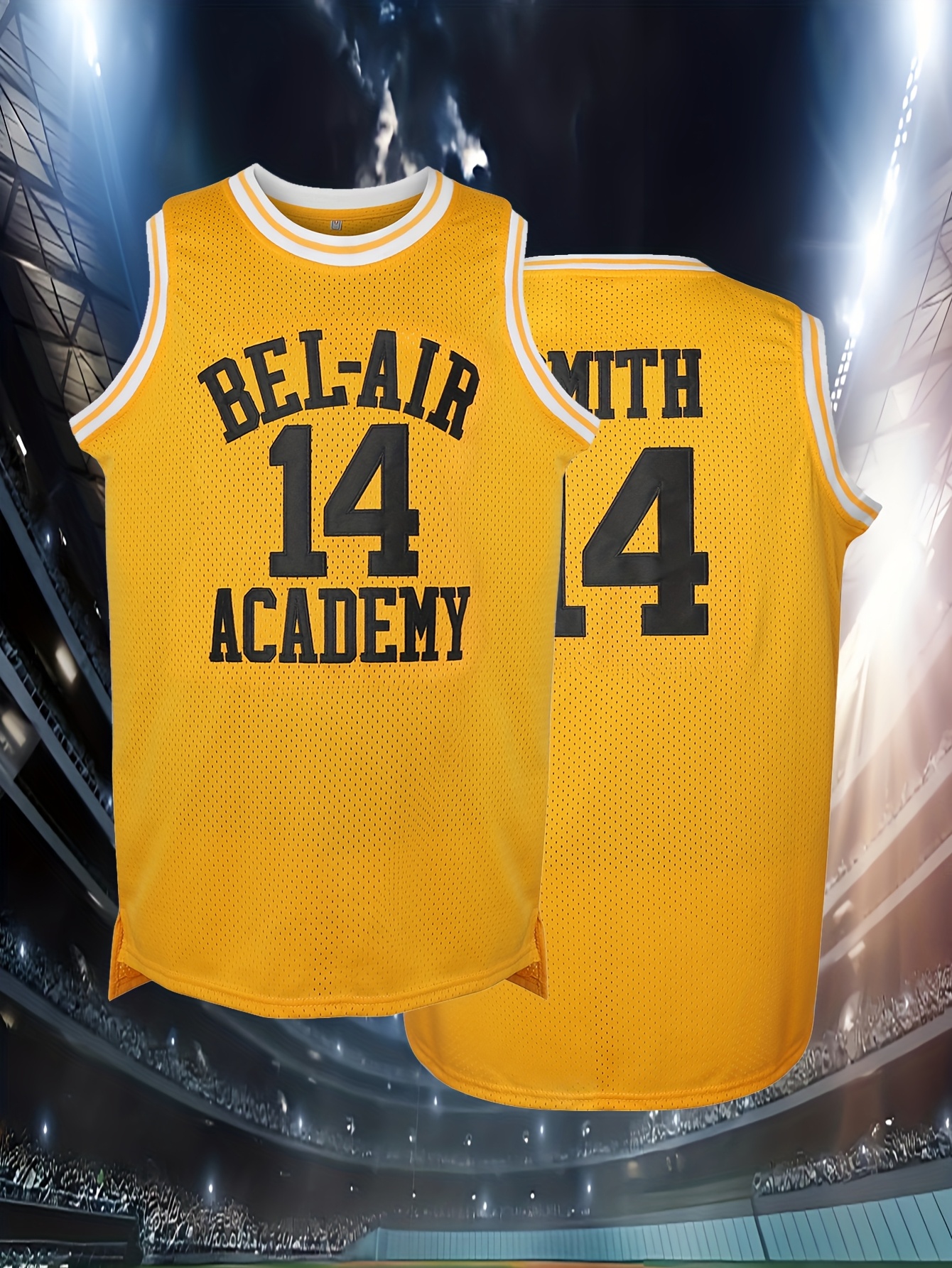 Men's Yellow Basketball Jersey #14 - Breathable Polyester Loose Fit Round Neck Embroidered Design for Sports & Casual Wear - Machine Washable - Ideal for Team Games, Outdoor Activities, and Parties