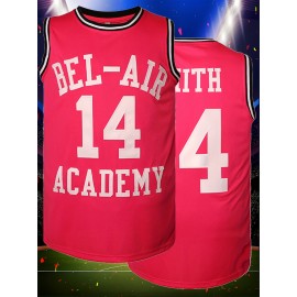 Bel-Air #14 Men's Pink Basketball Jersey - Vibrant Sports Uniform, S-XXXL, Lightweight Polyester, Machine Washable for Team, Casual & Outdoor Activities