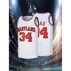 Men's #34 Maryland Basketball Jersey - Breathable Mesh Sports Training Uniform, White & Red, S-3XL, Comfortable for Casual & Athletic Wear