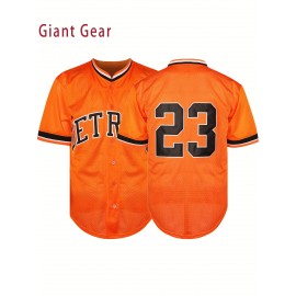 Men's #23 Orange Embroidered Baseball Jersey - V-Neck Loose Fit Polyester Shirt with Black Accents, Breathable & Durable for Casual, Team Sports, Outdoor Activities (S-3XL), Casual Streetwear, Sporty Look, Embroidered Detailing