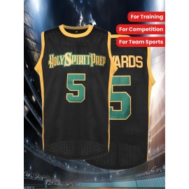 Men'S Basketball Shirt # 5-5 Black Basketball Sportswear Suitable For Training, Competition, Team Sports, Christmas, Halloween, Summer Party, Beach Party, Breathable Round Neck Embroidered Polyester Knitted Micro Elastic Loose Fabric S-XXXL