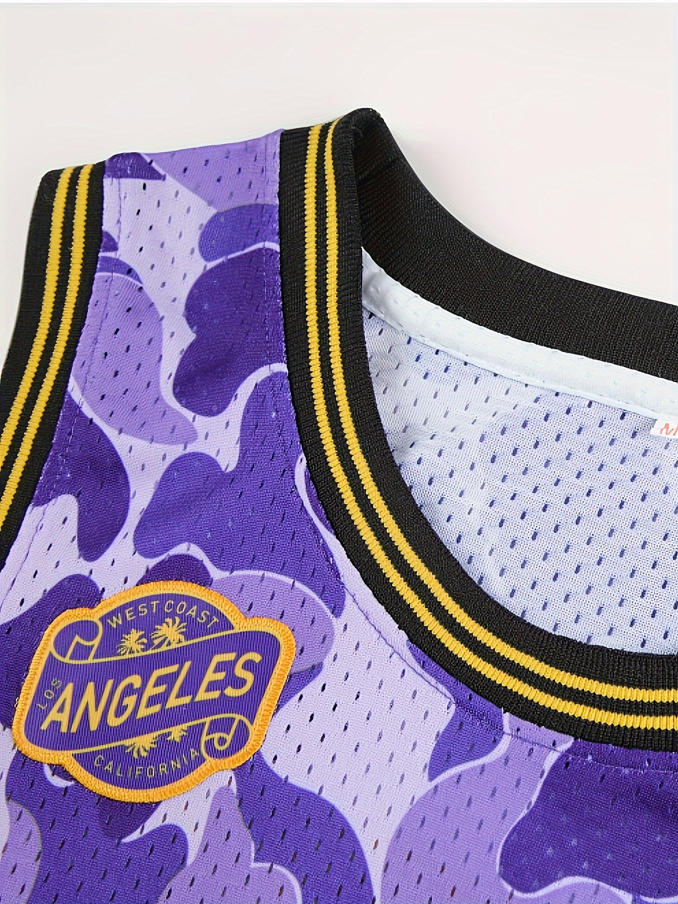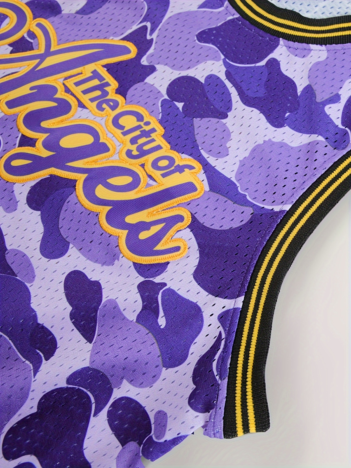 Men'S Embroidered Camo Basketball Jersey, Polyester & Spandex Blend, Crew Neck, Sleeveless, Breathable, Moisture-Wicking, Wrinkle-Resistant, Sports & Casual Style, with for Training, Games, and Parties