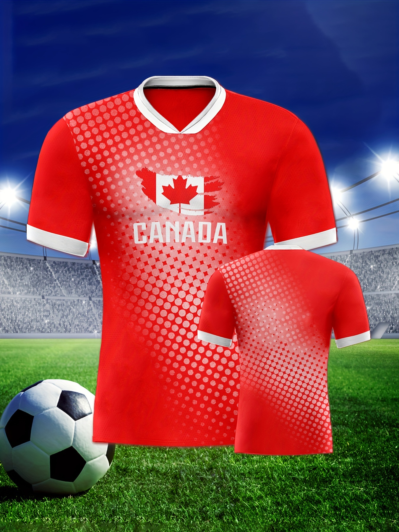 Women's Large Size Professional Sports Fabric Creative Pattern Print Canada Home Soccer Jersey T-shirt, Soccer Jersey Flag Uniforms Shirts Breathable And Lightweight, Moisture-Wicking, As Gifts For Sports Fans