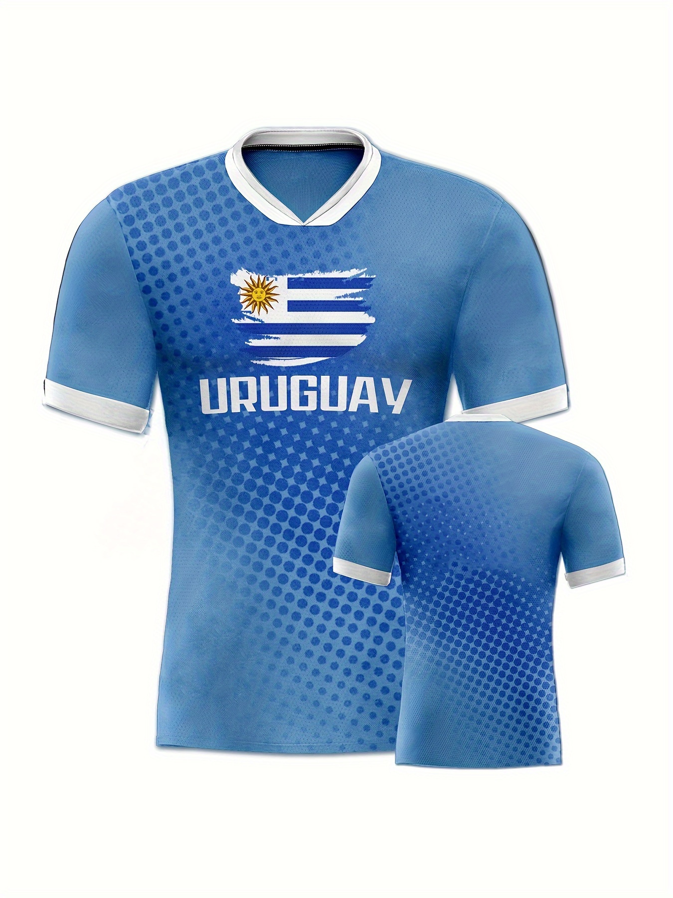 Women's Large Size Professional Sports Fabric Creative Pattern Print Uruguay Home Soccer Jersey T-shirt, Soccer Jersey Flag Uniforms Shirts Breathable And Lightweight, Moisture-Wicking, As Gifts For Sports Fans