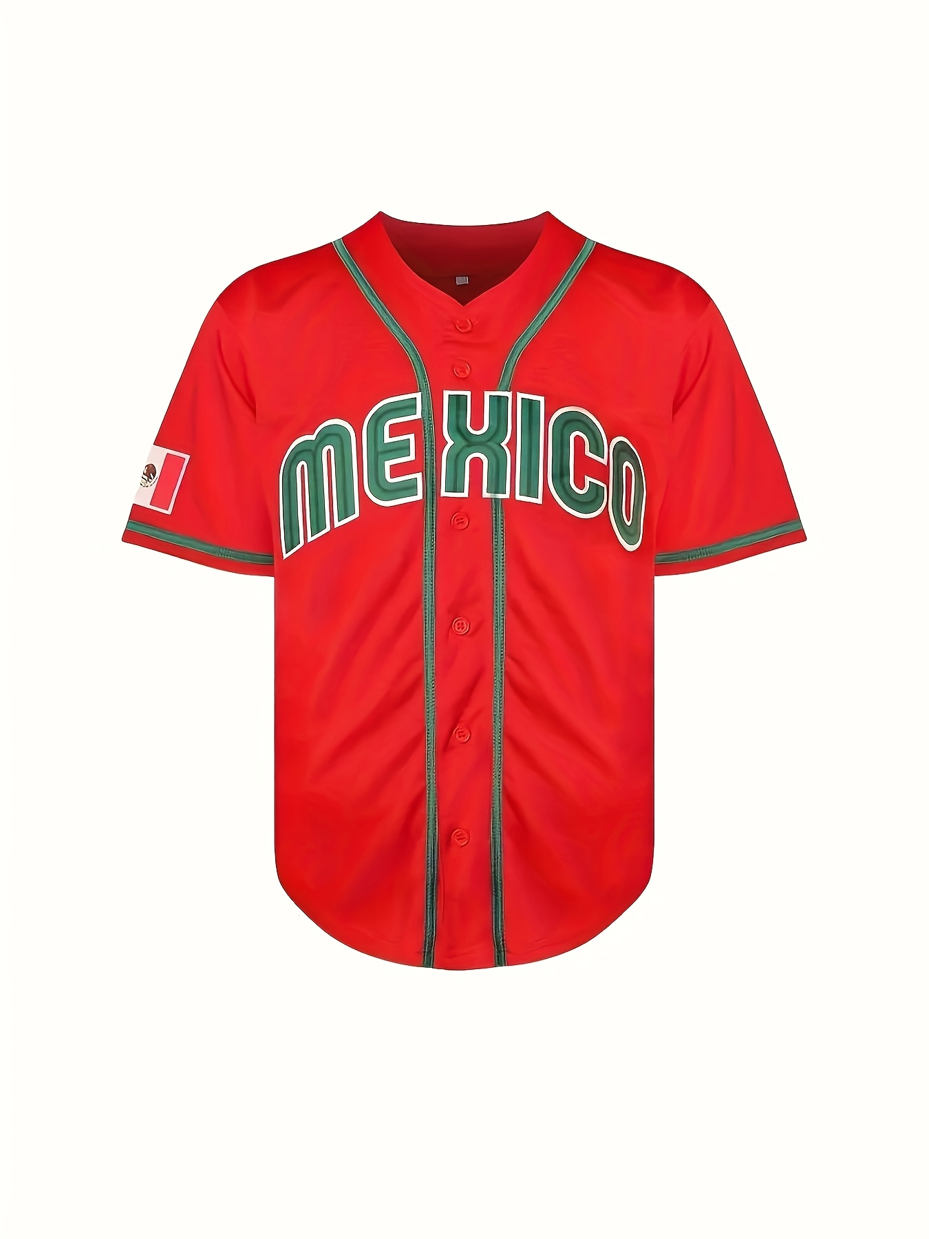 1pc Men'S Mexico #56 Baseball Jersey - V-Neck, Short Sleeve, Embroidered, Breathable Polyester, Lightweight, Moisture-Wicking, Ergonomic Design, Button Closure - Sports & Casual Wear for Four Seasons