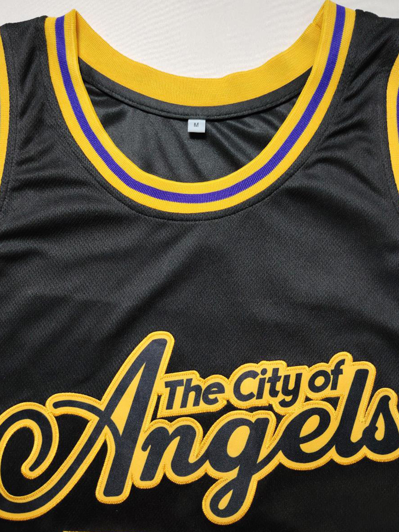 [Comfortable] Men's #24 "The City of Angels" Black Basketball Jersey - Breathable, Lettering & Numbering, V-Neck Sleeveless Sports Uniform for Training & Casual Wear, Summer Ready