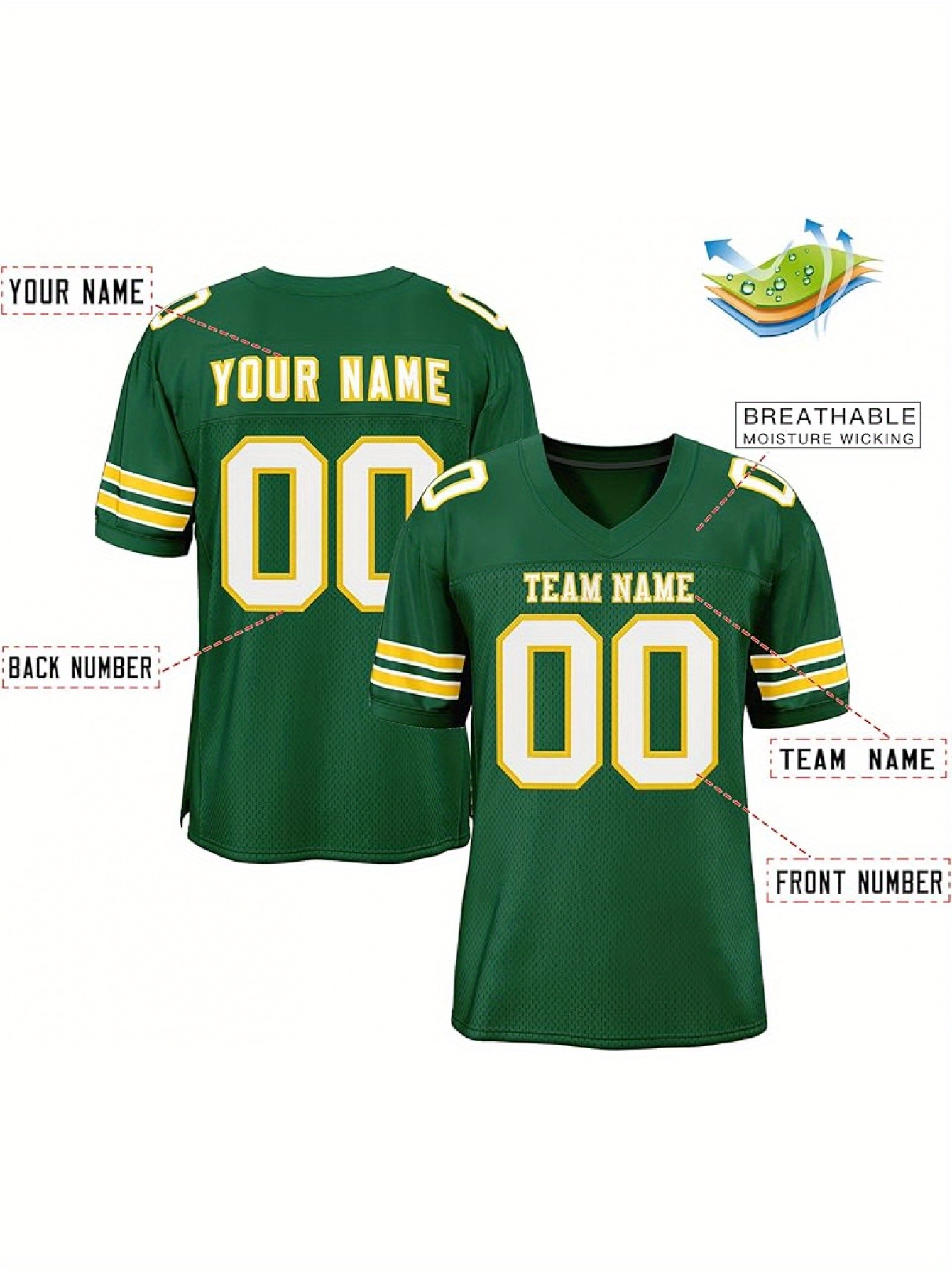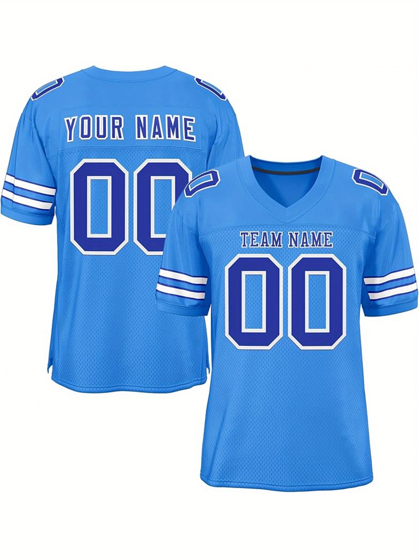 Customizable Football Jersey - Personalized Name & Number, V-Neck, Short Sleeve, Breathable Mesh Fabric, Team Colors with Bold "00" Design, Summer Sports T-Shirt for Game Day & Team Identification, Football Jersey, Comfortable Sports Apparel