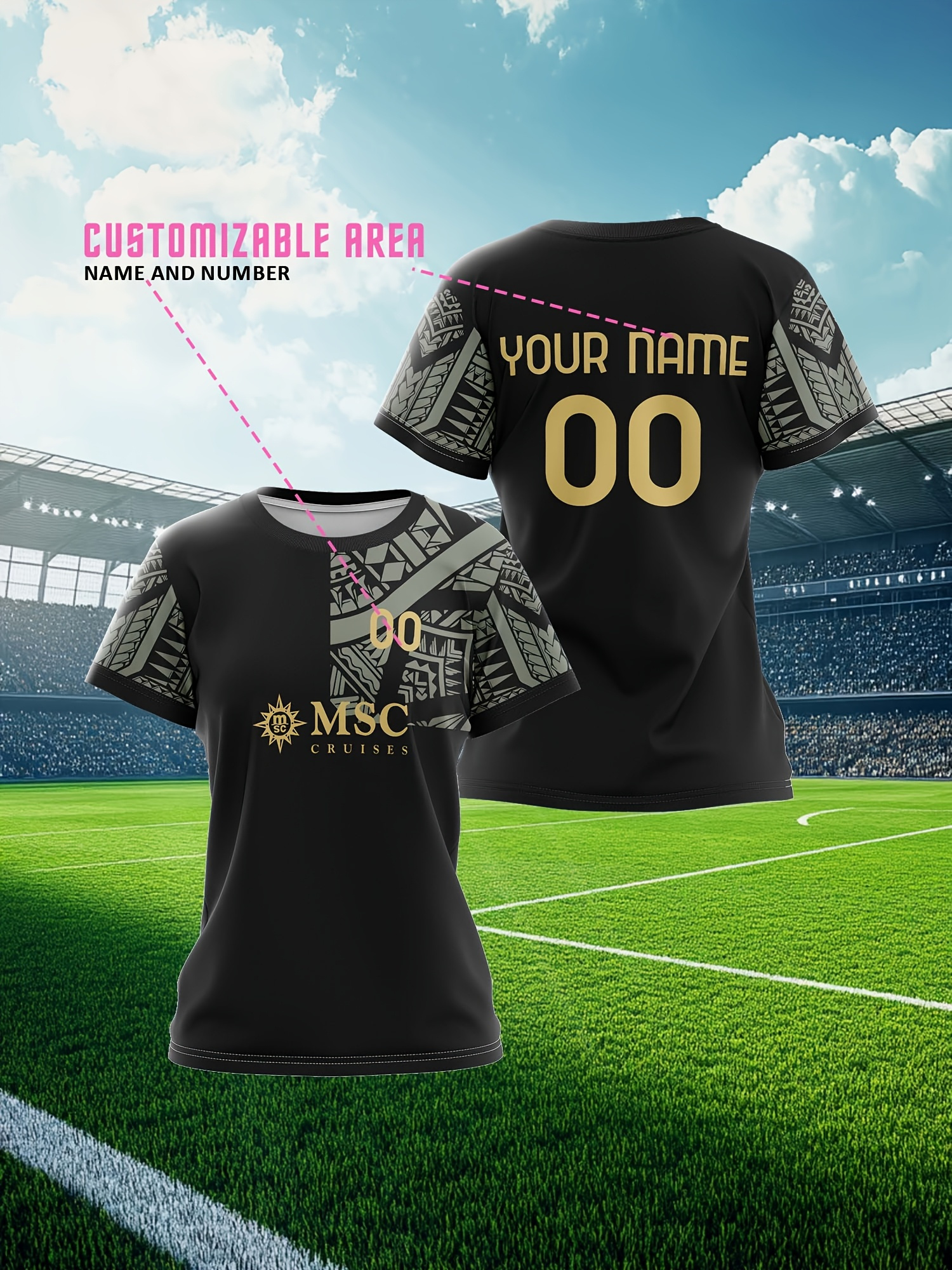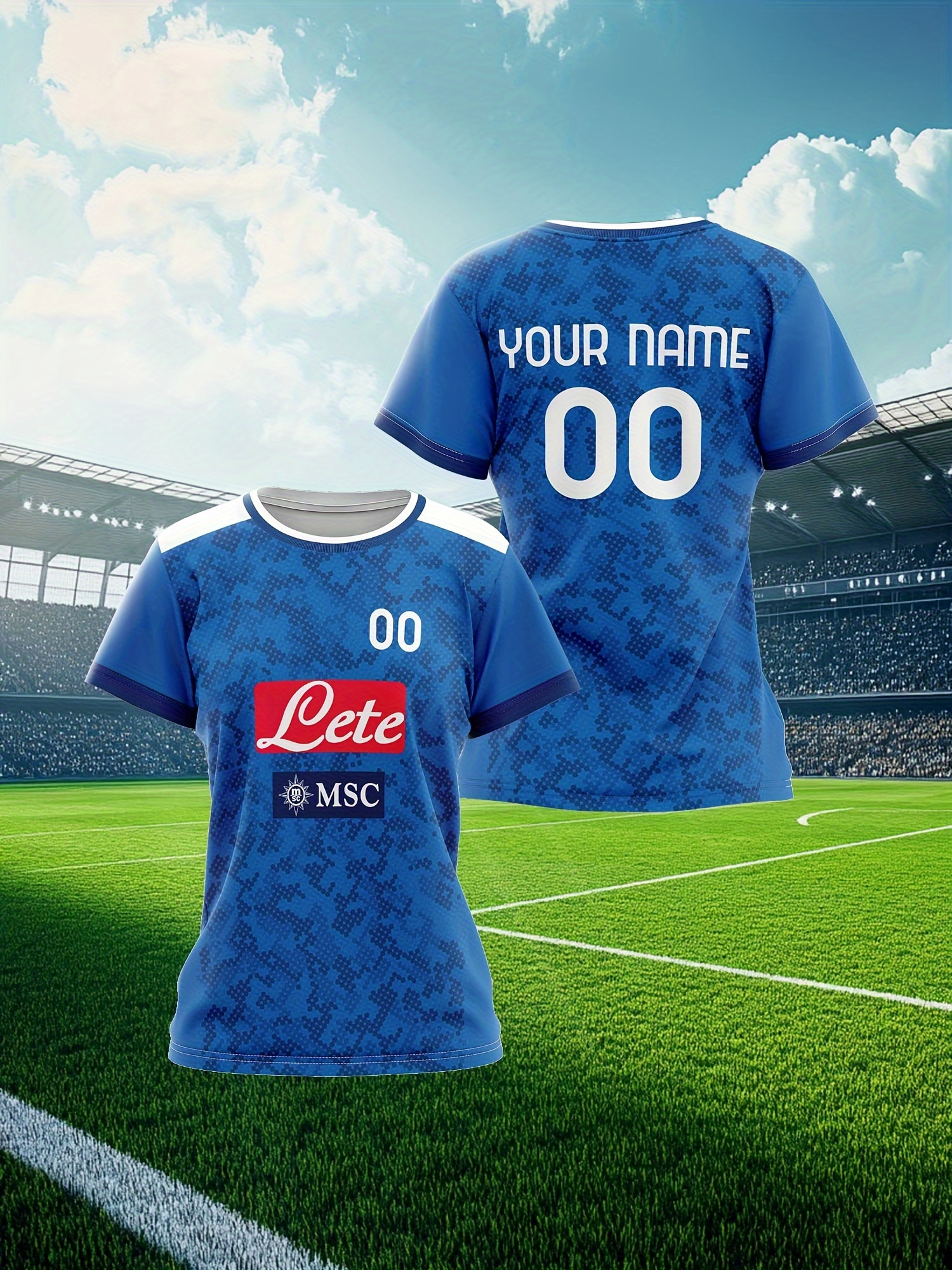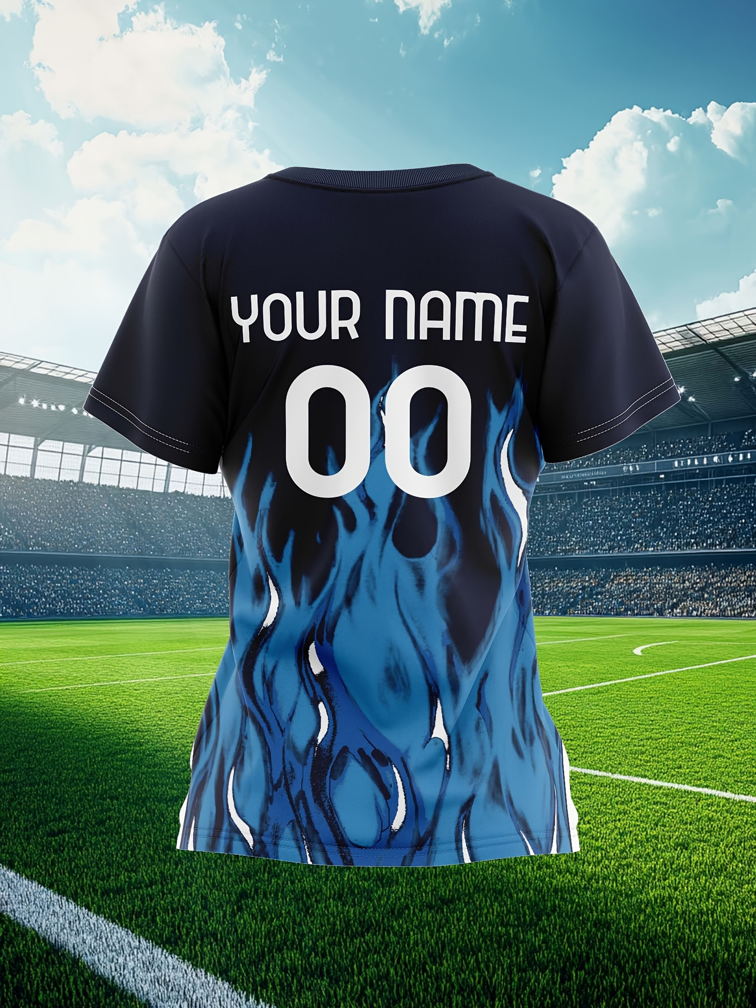 Customizable Women'S Plus Size Football Jersey - Personalized Team Name & Number, Breathable Outdoor Sports Shirt with Vibrant Blue & Pink Geometric Design, Perfect for Soccer Fans, Soccer Fan Apparel | Vibrant Jersey Design | Durable Fabric Shirt