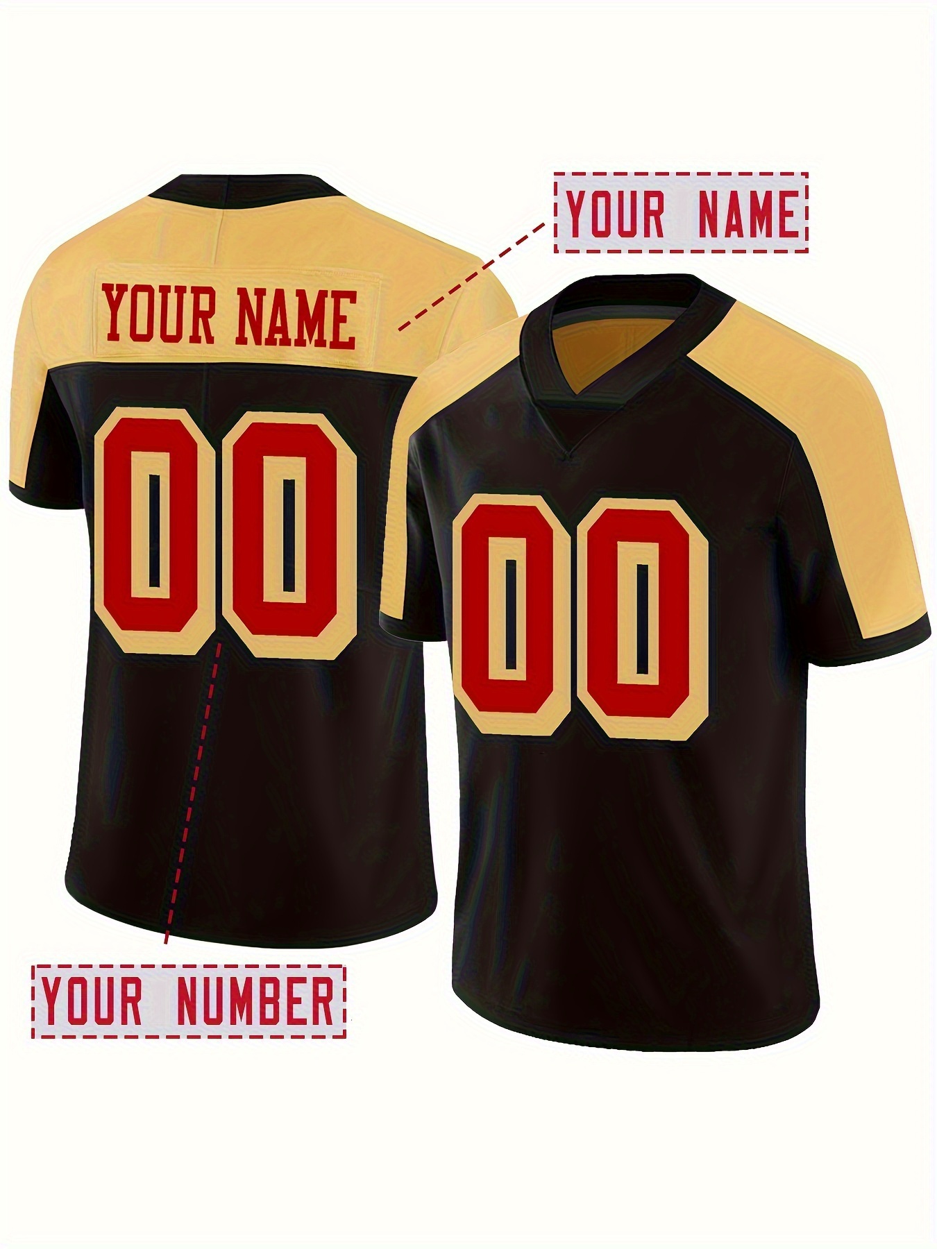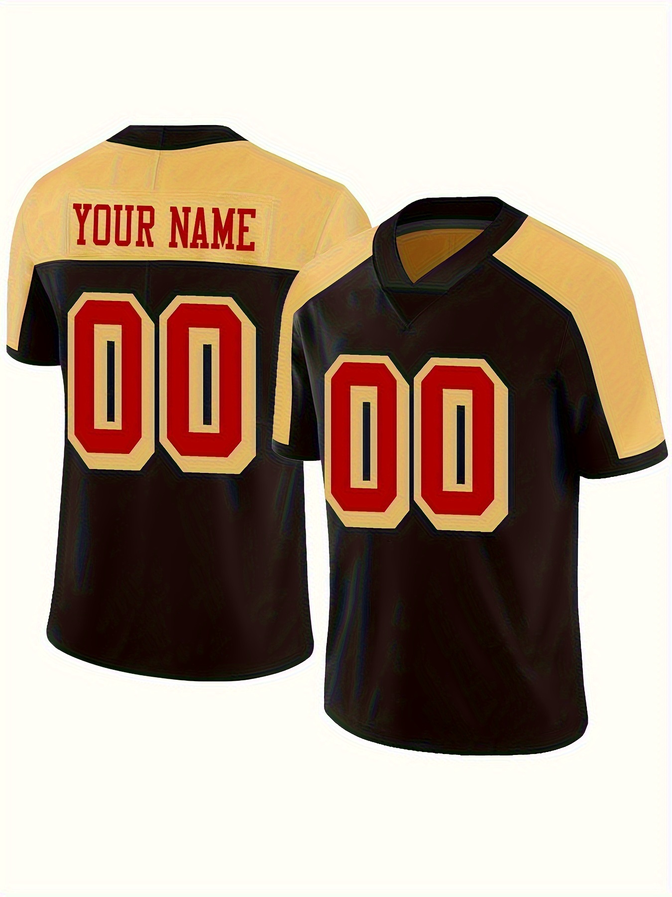 Customizable Women'S Plus Size Football Jersey - Personalized Team Name & Number, V-Neck, Short Sleeve, Breathable Fabric for Outdoor Sports, Black with Yellow Accents, Custom Football Jersey, Casual Sportswear, Sporty Design, Comfortable Fit