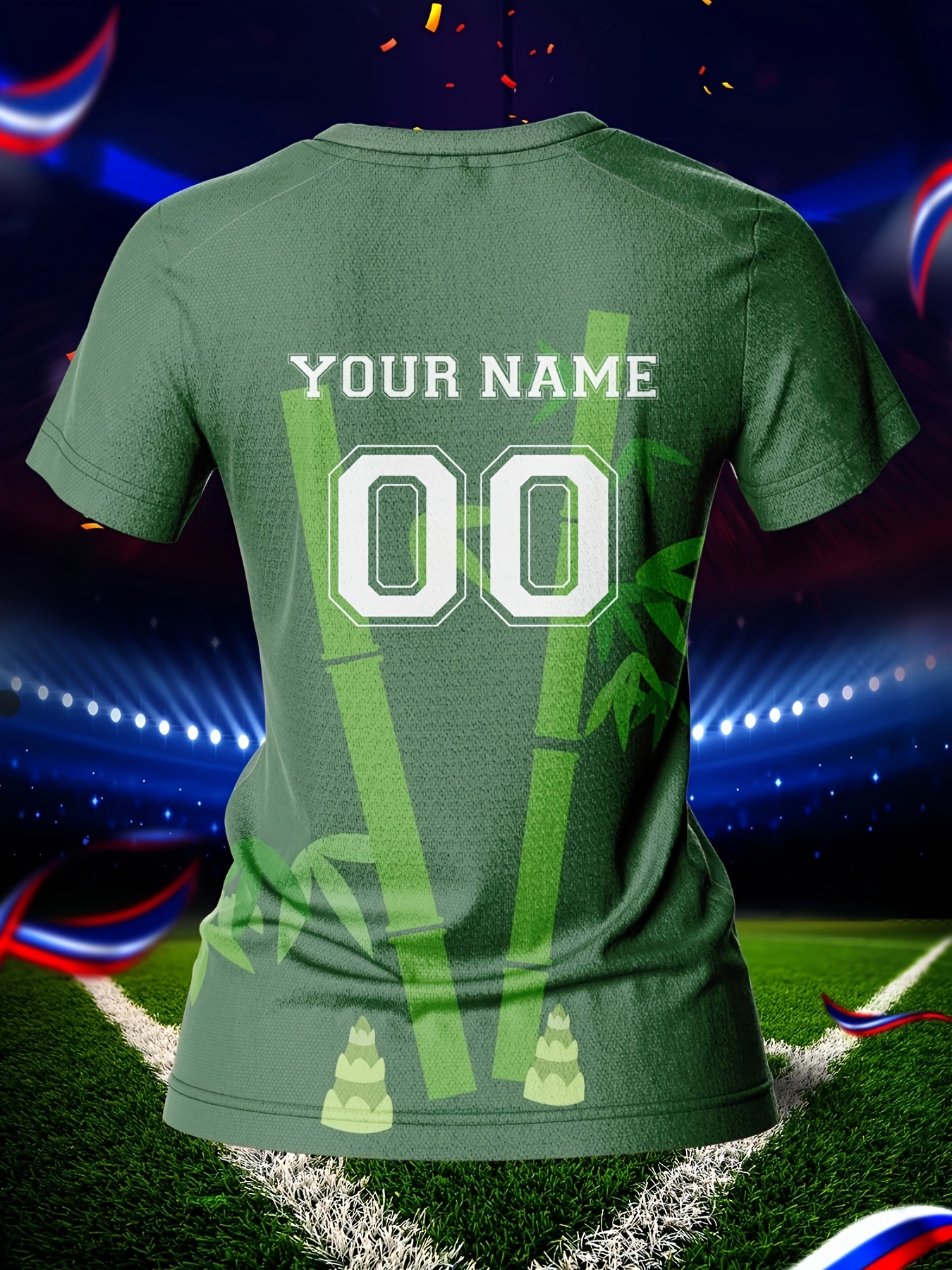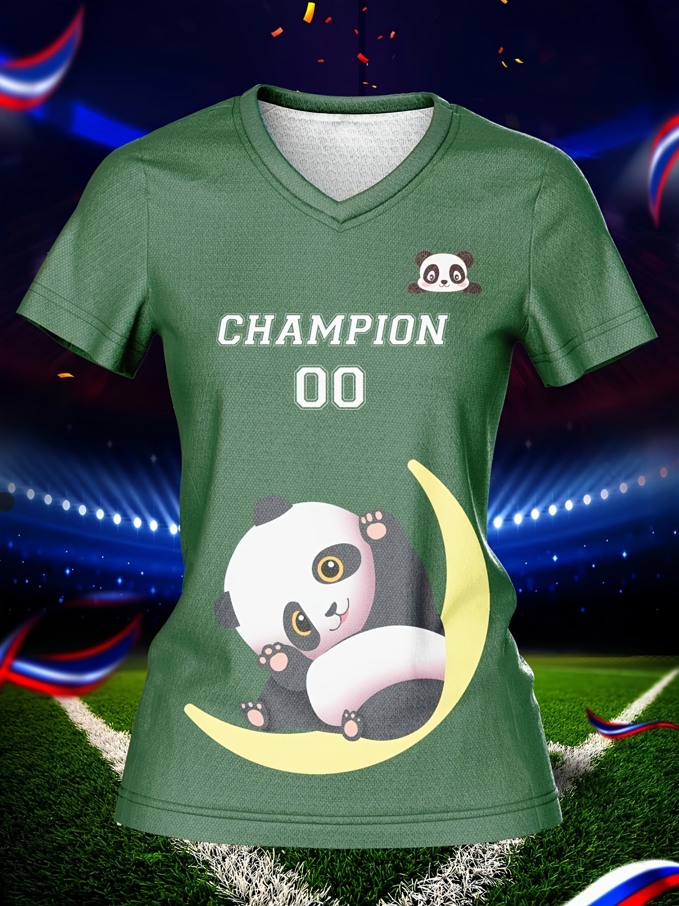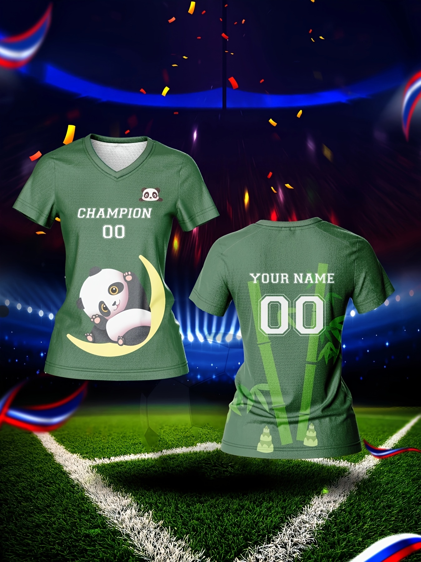 Customized Women's V-Neck Football Jersey - Personalized Name & Number, Breathable Quick-Dry Fabric, Team Training & Casual Wear with Cute Cartoon & Champion 00 Design, Spring Summer Fall Sports Apparel, Durable Sports Gear