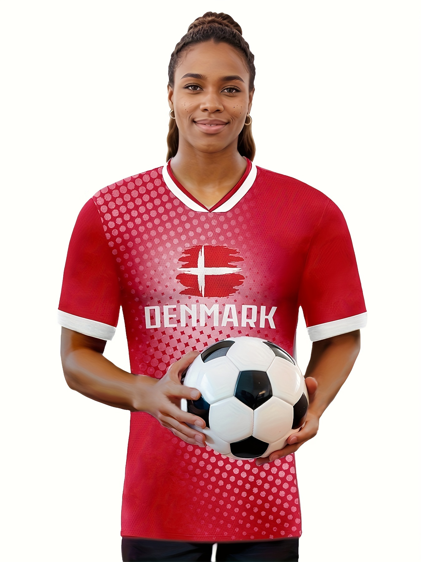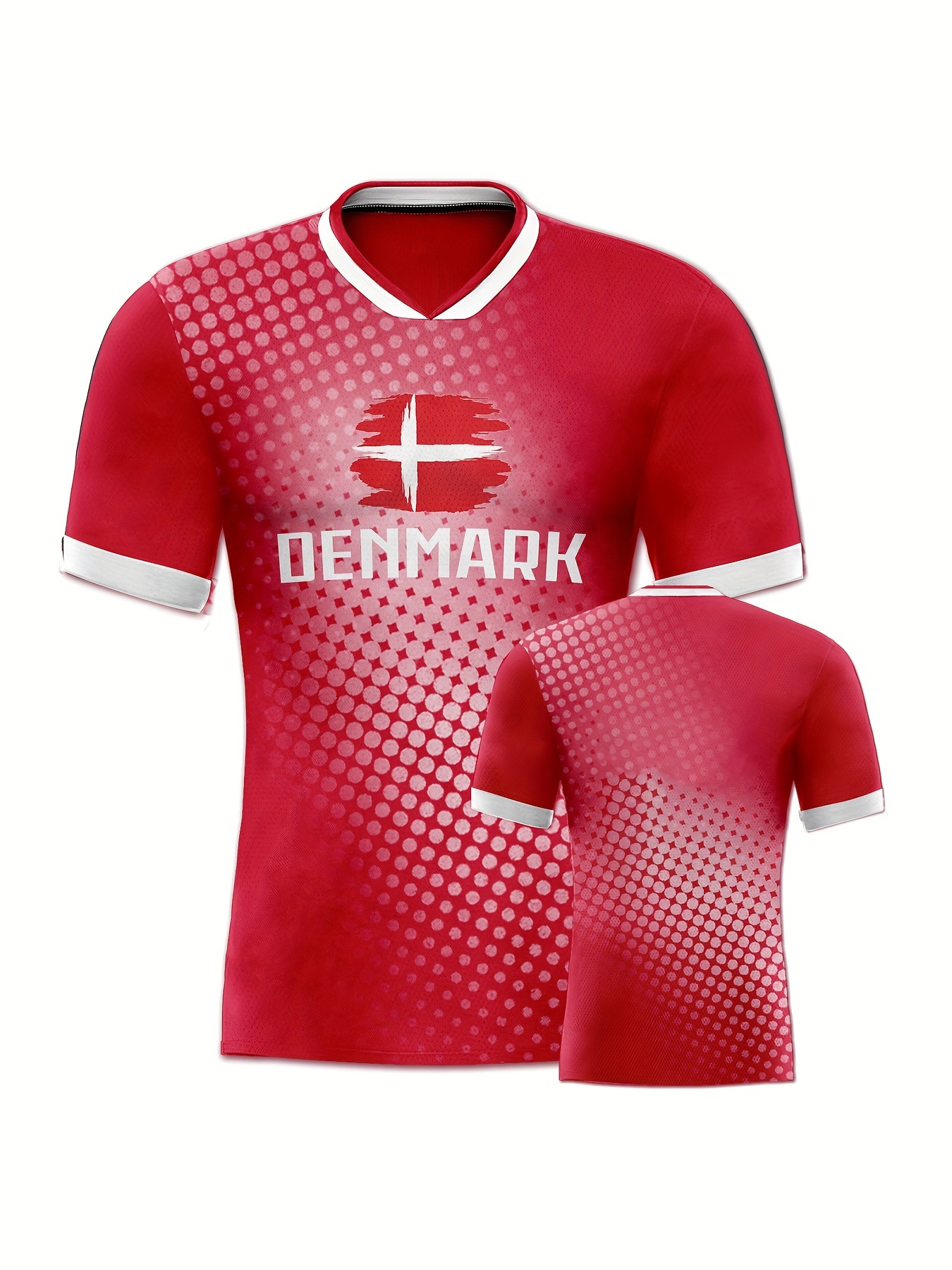 Denmark Country Home Soccer Jersey T-shirt, Professional Sports Fabric Women's Creative Pattern Print, As Gifts For Sports Fans