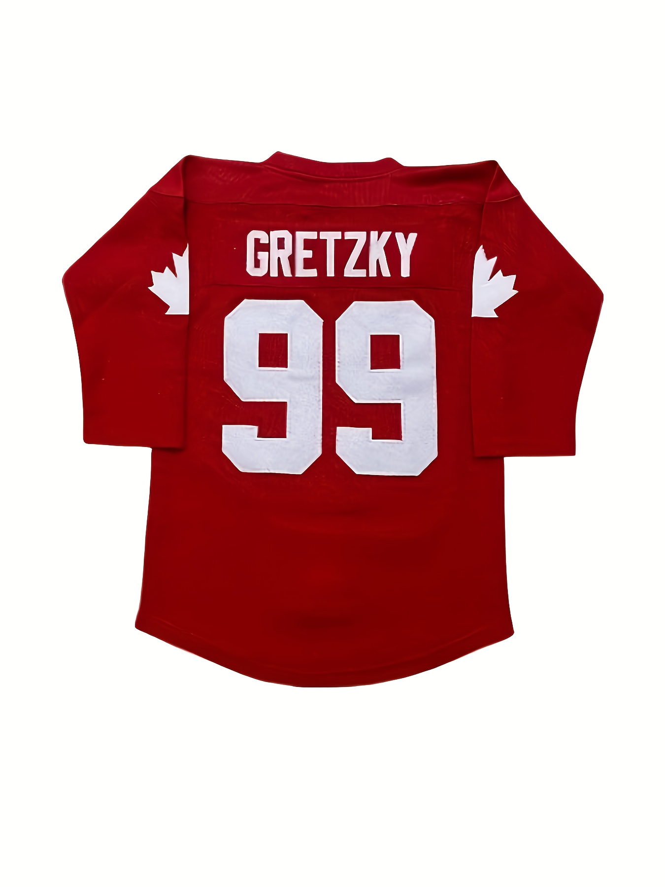 Gretzky #99 Canada Cup Team Ice Hockey Jersey - Vintage Red & White Design, Breathable Polyester, V-Neck, Long Sleeve, Details, Perfect for Casual Wear, Parties & Sports