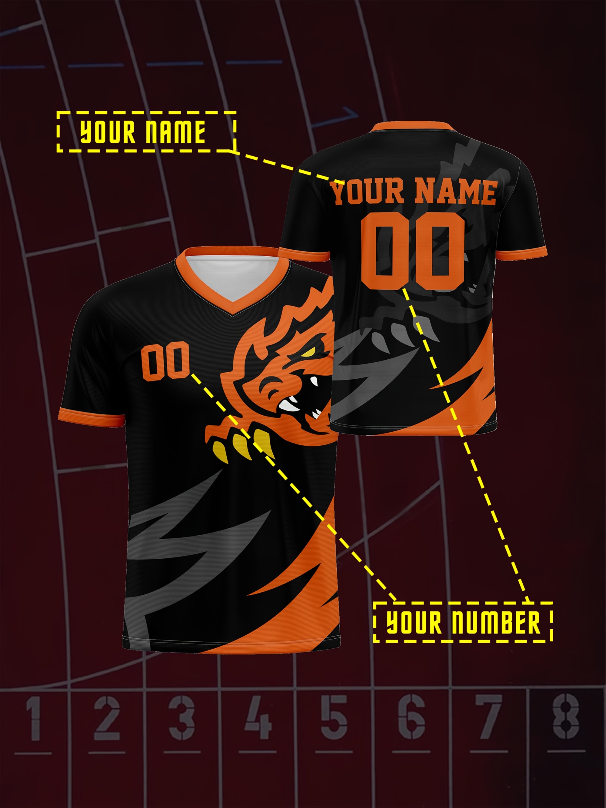 1pc Customizable V-Neck Soccer Jersey for Kids - 100% Polyester, Medium Stretch, All-Over Print, Personalized Name & Number, Regular Fit, for Boys & Girls, Ideal for Sports, Casual Wear, Training, Beach, Birthday - Spring/Summer/Fall