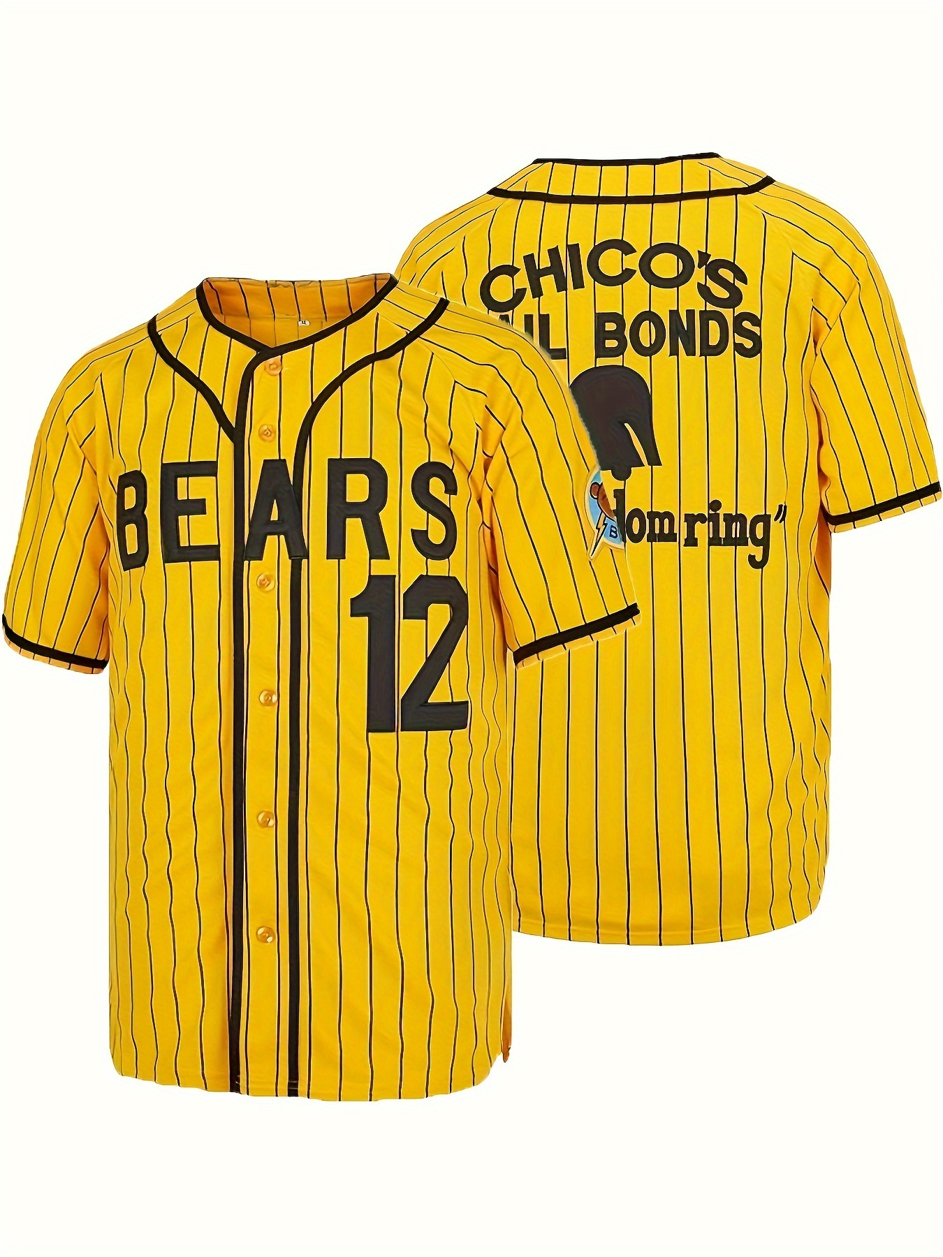 Men's #12 Yellow Stripes Baseball Jersey, Classic Retro Letter Embroidery Design Breathable Short Sleeve T-Shirt