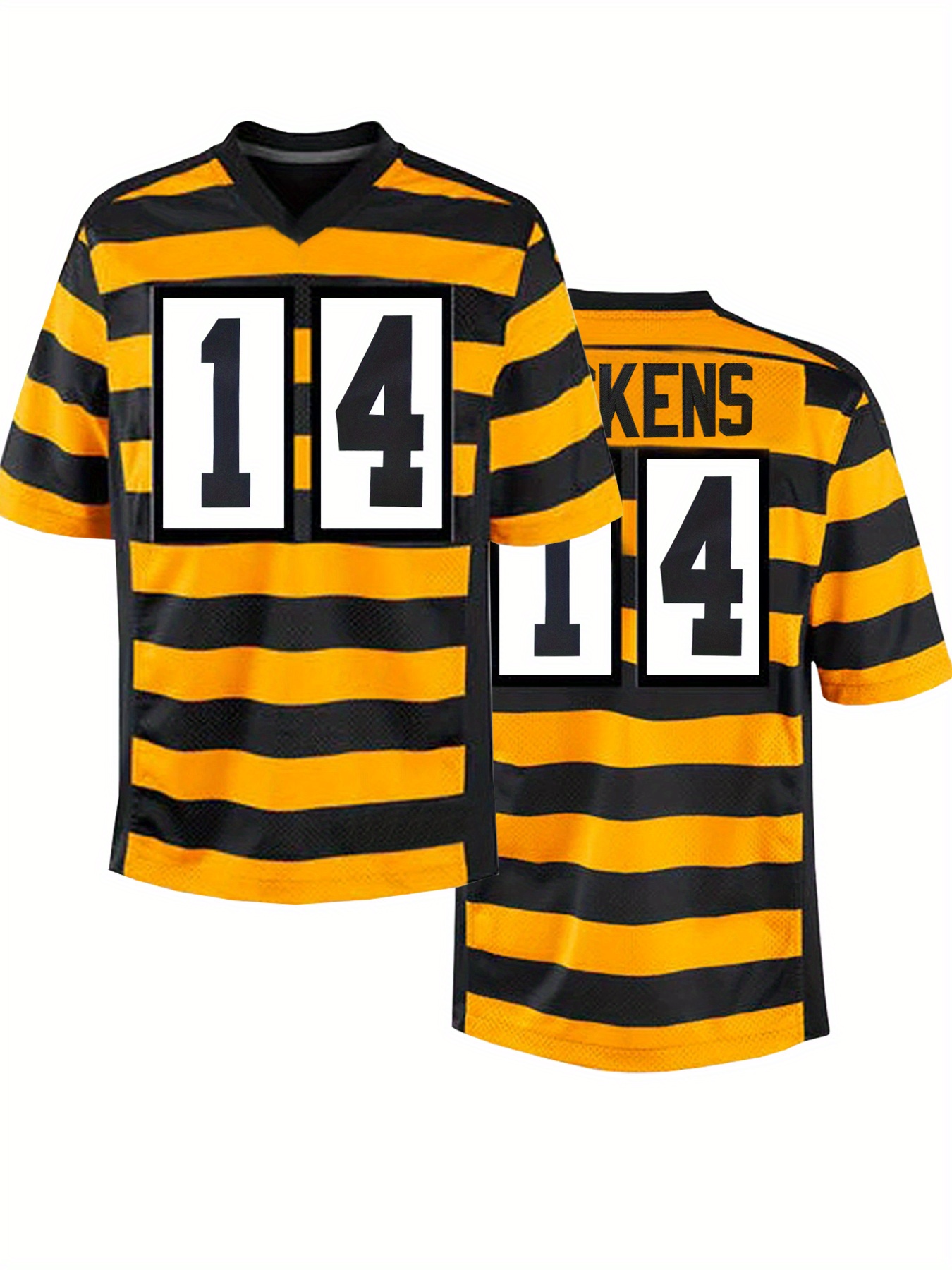 Men'S #14 Black and yellow color blocking Embroidery Sport Jersey : V-neck short sleeves Breathable Sports Uniform For Training Competition