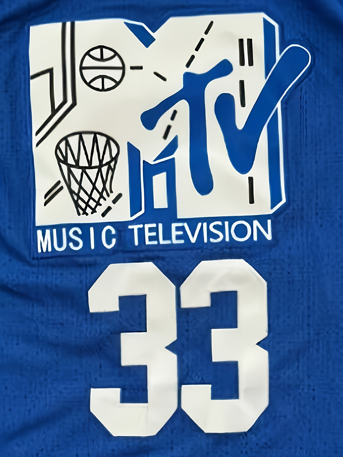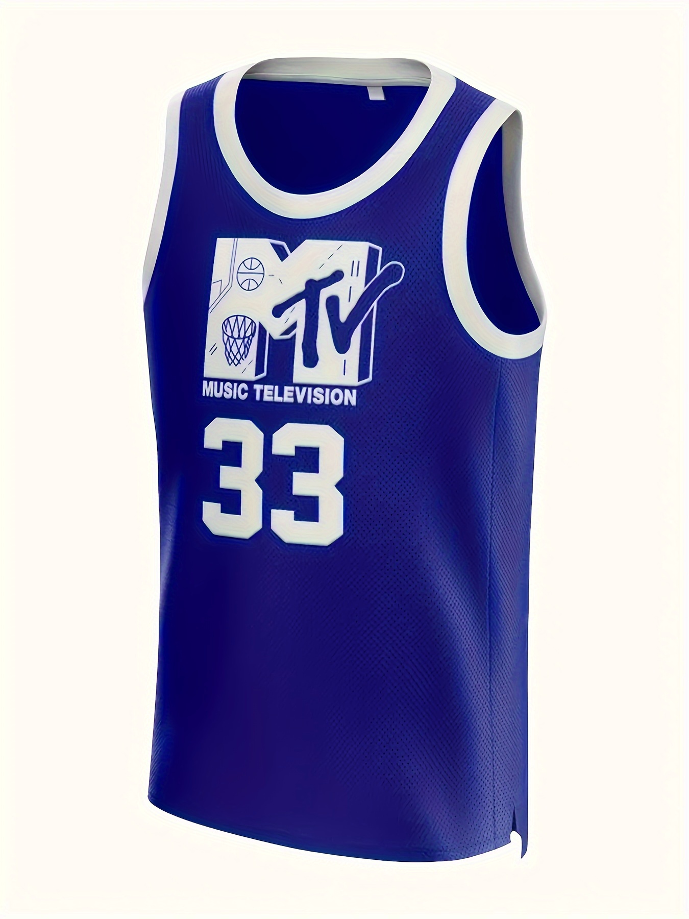 Men's #33 Breathable Basketball Jersey - Casual & Sporty Sleeveless Tank Top in Blue, MTV Music Television Embroidery, Polyester, Round Neck - Perfect for Team Sports, Outdoor Activities & Casual Attire, Sizes S-3XL