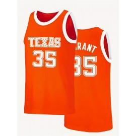 Men's #35 "Texas" Embroidered Basketball Jersey - Vibrant Orange Polyester, Crew Neck, Sleeveless Sports Shirt for Training & Competition, Easy-Care, Sizes S-XXXL, Casual Wear|Casual Sports Shirt|Glossy Finish, Basketball Gifts