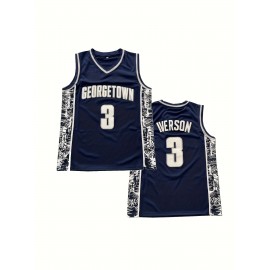 Men's Georgetown #3 Basketball Jersey - Navy Blue with White & Red Accents, V-Neck, Sleeveless, Polyester, Machine Washable - Ideal for Team Sports, Outdoor Activities & All Seasons, Basketball Gifts
