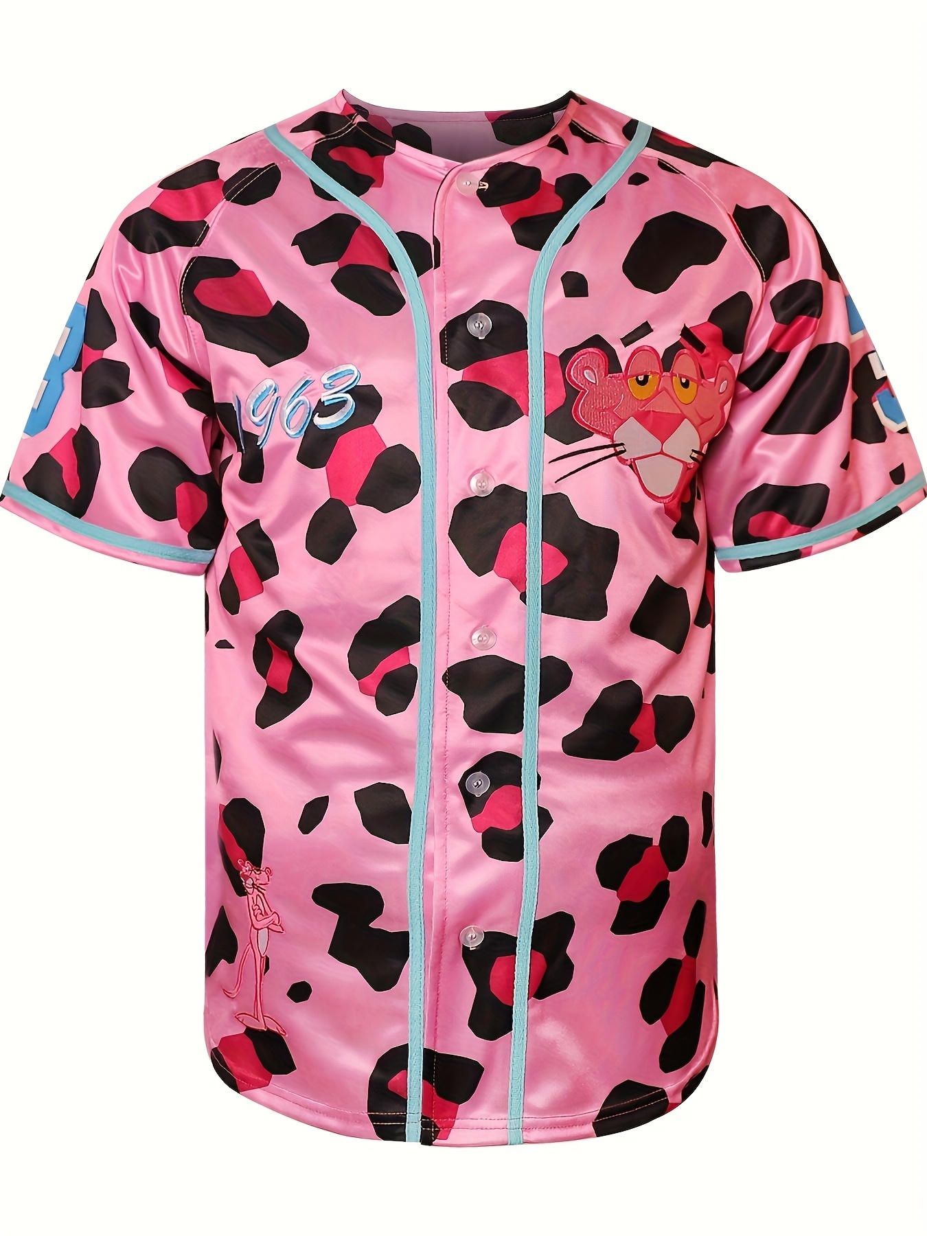 Pink Panther Baseball Jersey For Men, 90s Hip Hop Stitched Sports Fan Clothing For Party White Pink Purple S-3XL