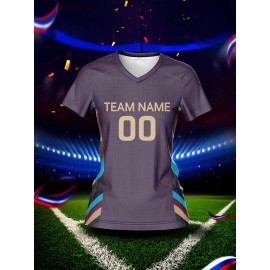 Customizable Women's V-Neck Soccer Jersey - Personalized Name & Number, Breathable Polyester, Quick-Dry Athletic Top for Team Training, Sports Fitness & Casual Wear, Casual Sportswear | Customizable Sports Gear | Smooth Fabric