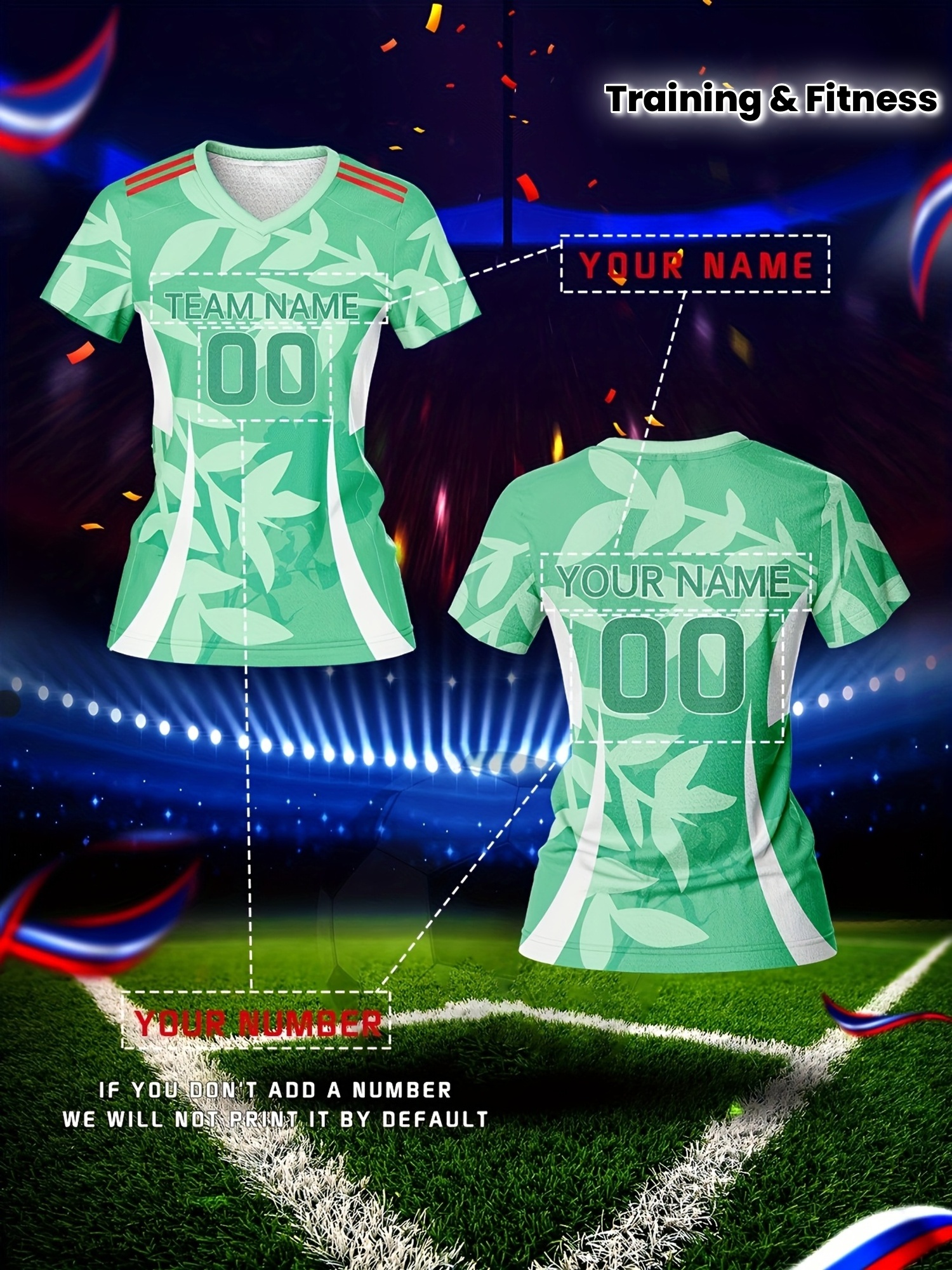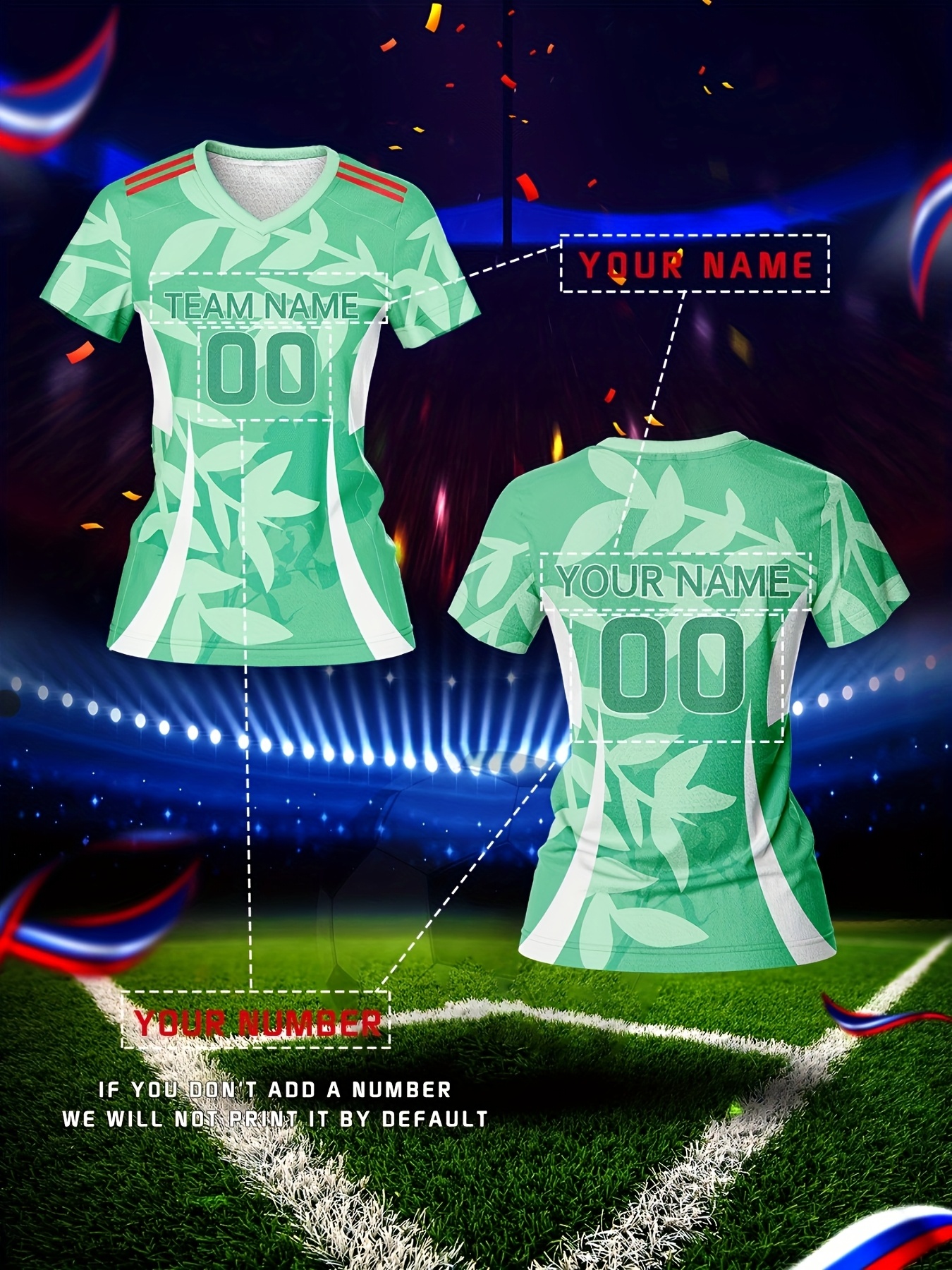 Customized Women'S V-Neck Football Jersey, Polyester 100%, Quick-Dry Knit Fabric, All Over Print, Regular Length, Slight Stretch, Breathable for Training & Fitness, Spring/Summer/Fall Sports Top