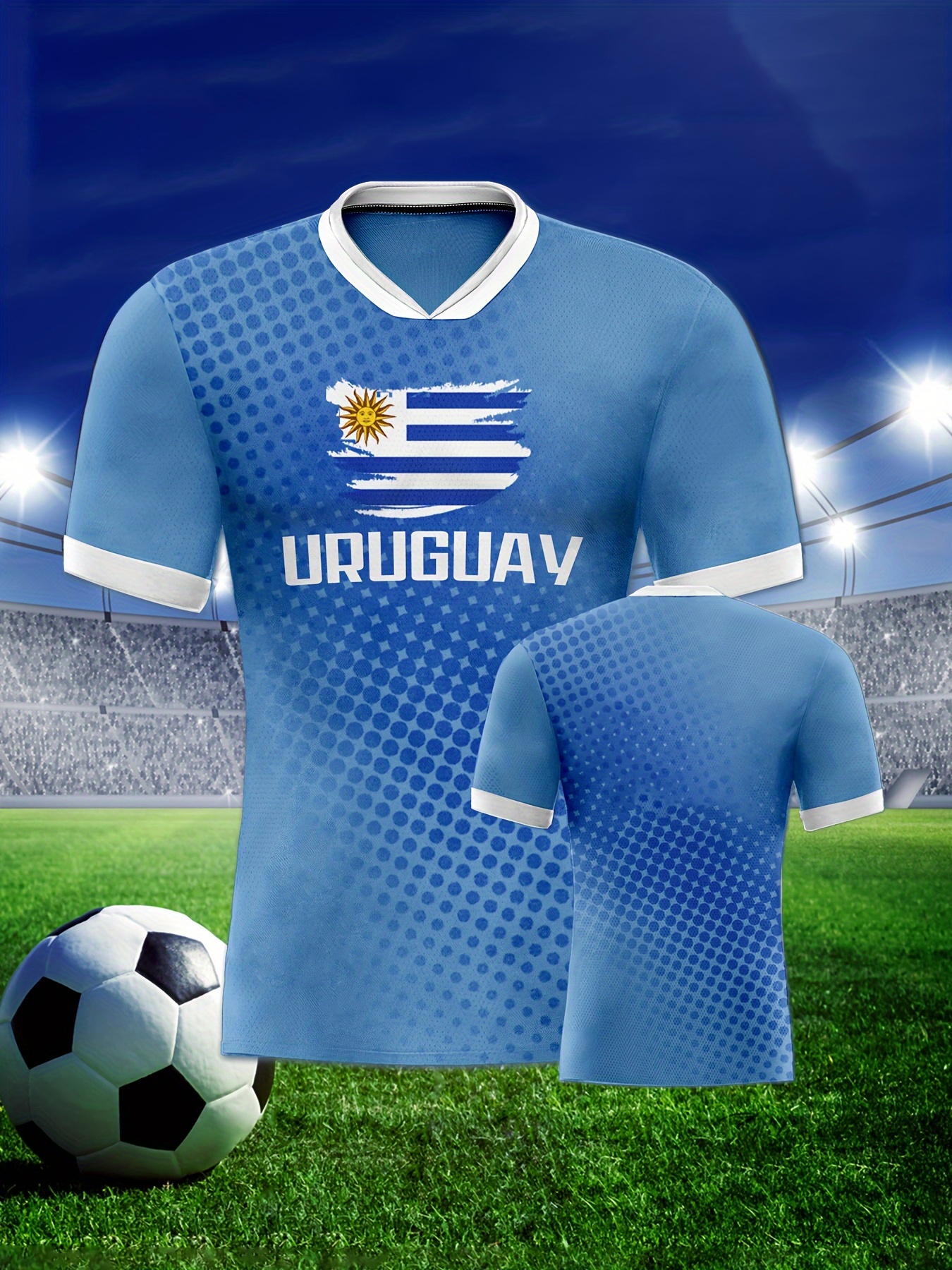 Women's Large Size Professional Sports Fabric Creative Pattern Print Uruguay Home Soccer Jersey T-shirt, Soccer Jersey Flag Uniforms Shirts Breathable And Lightweight, Moisture-Wicking, As Gifts For Sports Fans