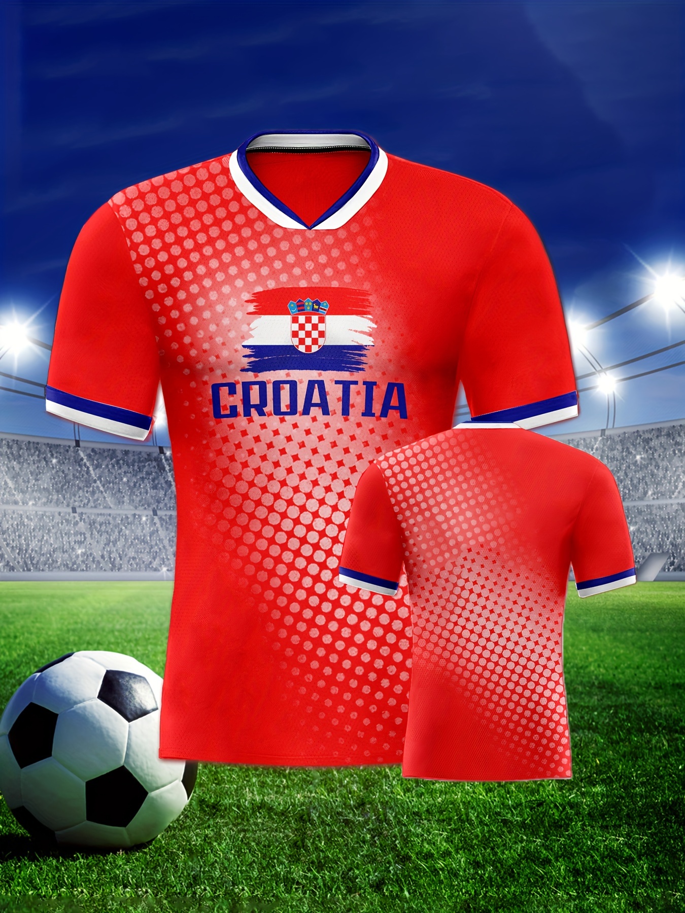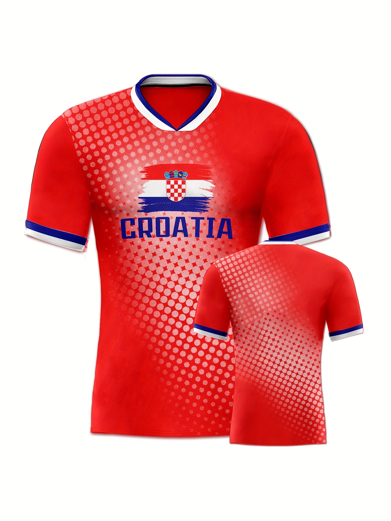 Women's Plus Size Croatia Soccer Jersey - Patriotic Red & Blue V-Neck, Breathable & Lightweight Polyester Sports Tee with Croatian Flag & "CROATIA" Print, Moisture-Wicking, Ideal for Fans & Players