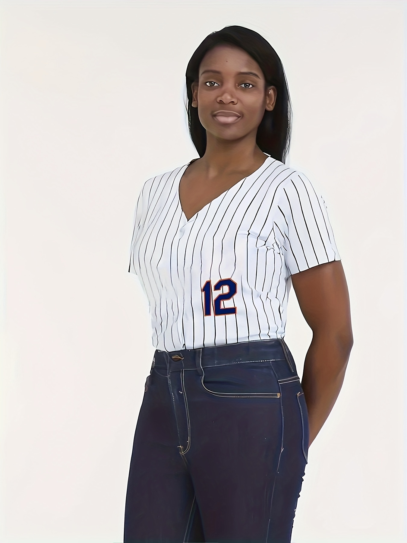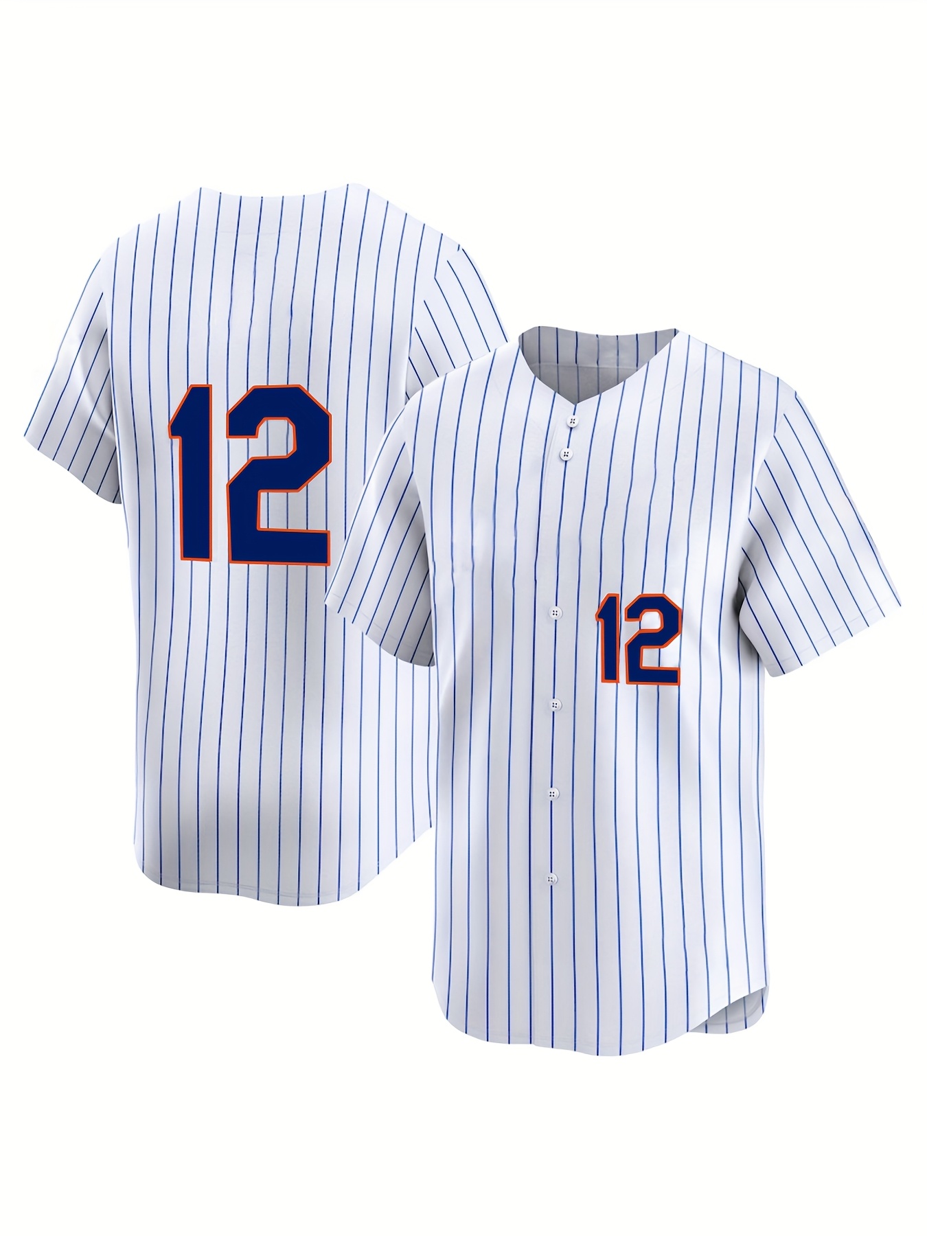 Women's Plus Size New York #12 Baseball Jersey - White & Blue Striped Retro Design, Moisture-Wicking, Breathable Polyester, UV Protection, Fade Resistant, Perfect for Training, Parties & Gifts for Baseball Fans